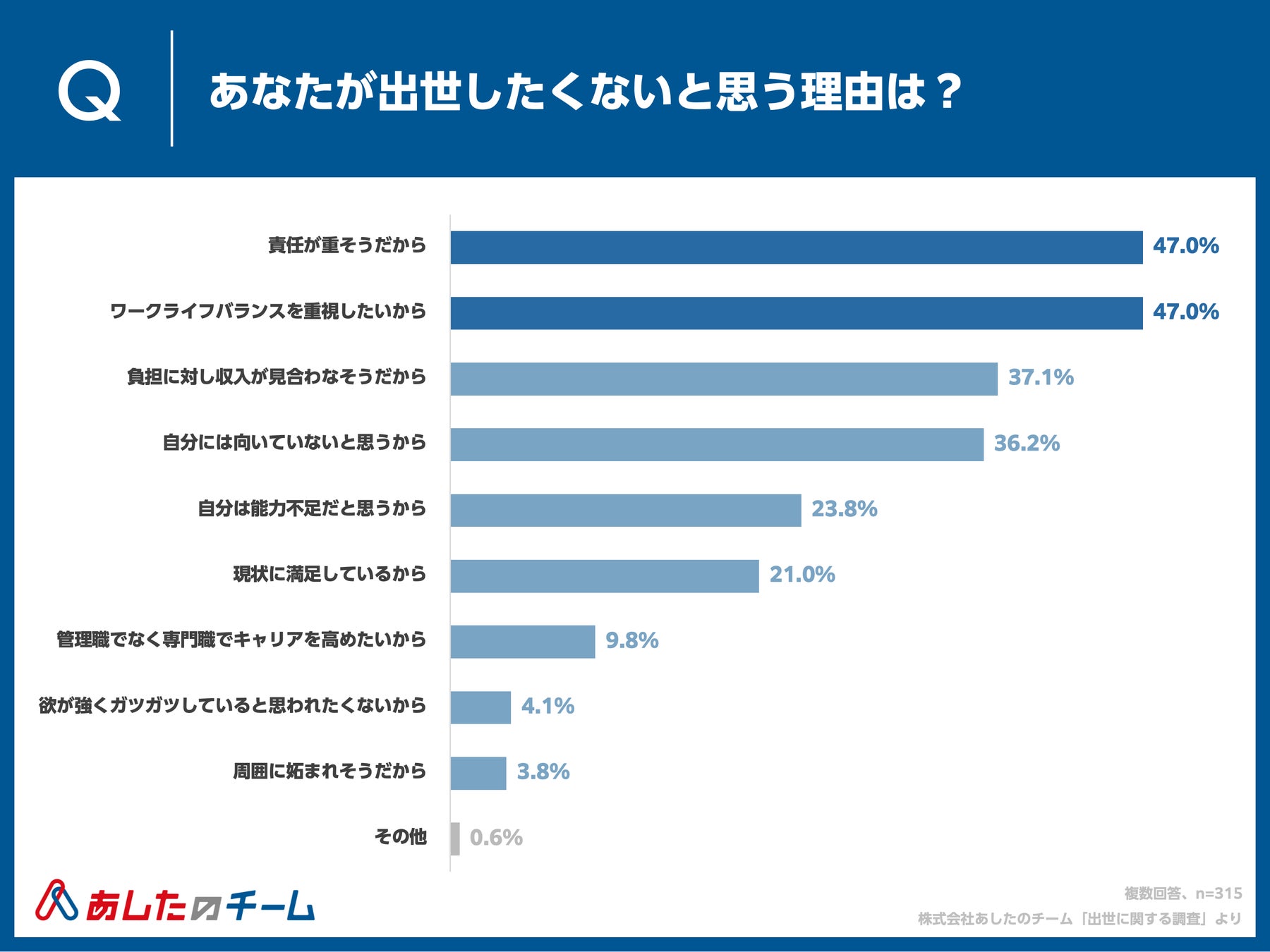 Q. あなたが出世したくないと思う理由をお答えください。(複数回答、n=315)