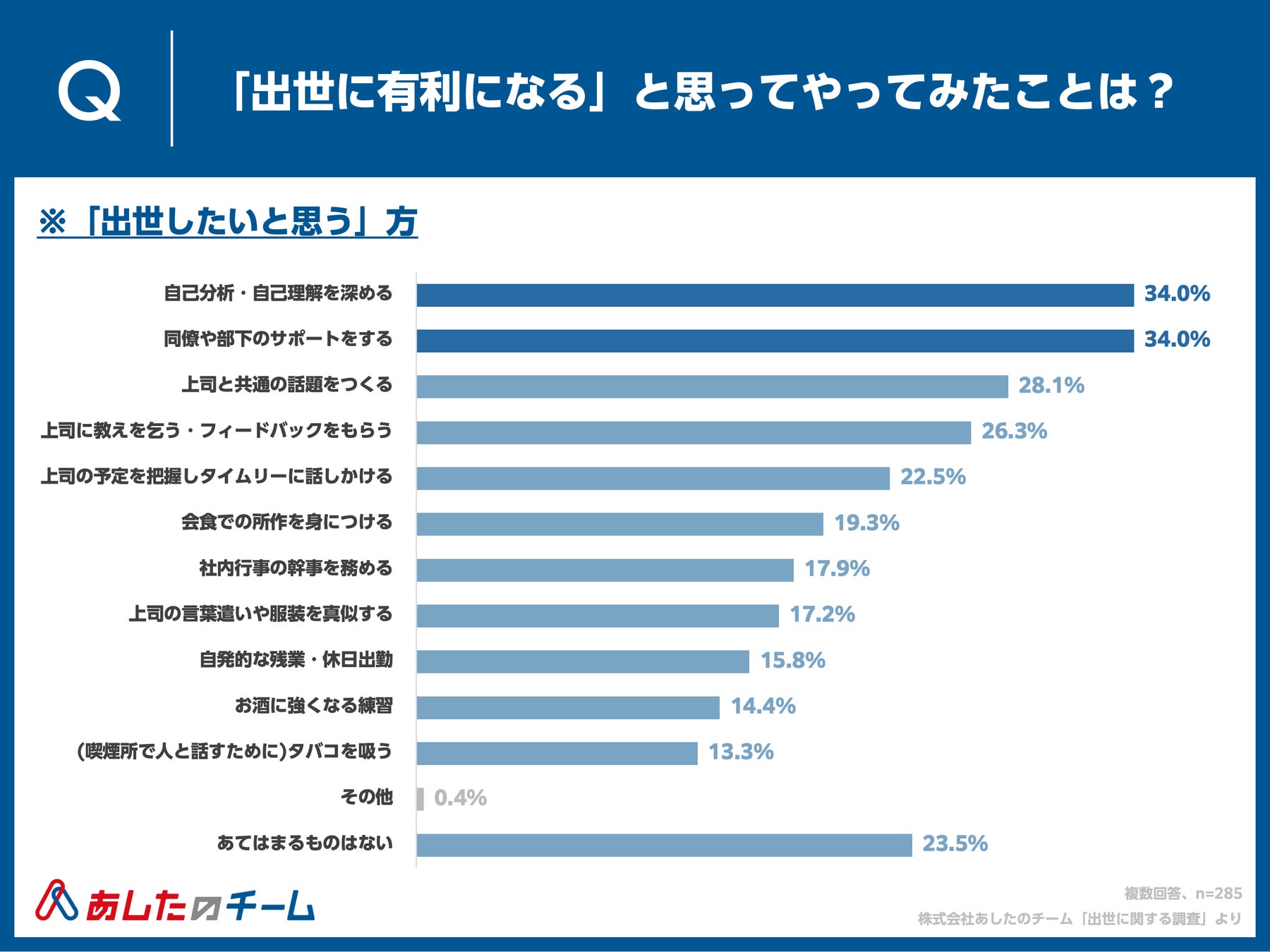 Q. あなたが「出世に有利になる」と思ってやってみたことがあるものをお答えください。