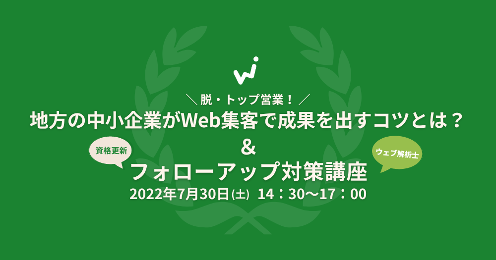 2022/7/30(土)14:30 - 17:00 地方の中小企業がWeb集客で成果を出すコツとは?&2022年度ウェブ解析士フォローアップテスト対策講座【ウェブ解析士協会中部支部主催】