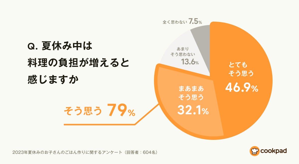 小学生から高校生のお子さんのいる方のうち8割(79%)の方が、夏休み中は料理の負担が増えると回答