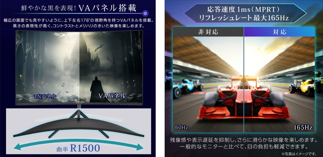 鮮やかな黒を表現するVA カーブスクリーンパネル搭載&Adaptive sync対応でゲームに没入できるゲーミングモニターを、ジェネリック家電ブランド「MAXZEN」より2024年5月31日から発売
