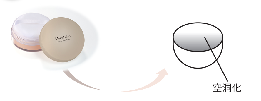 中が空洞のミネラルは、つけ心地が軽く、さらに水を吸収しにくいため、時間が経ってもくすみにくいです。