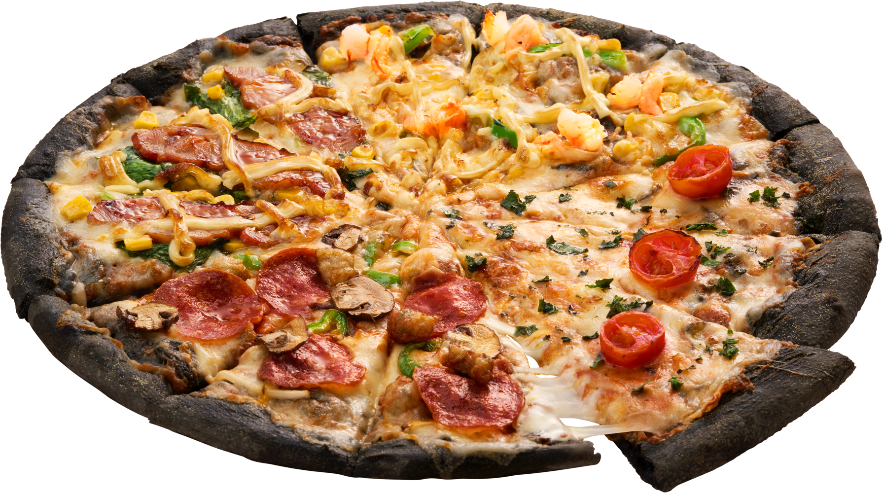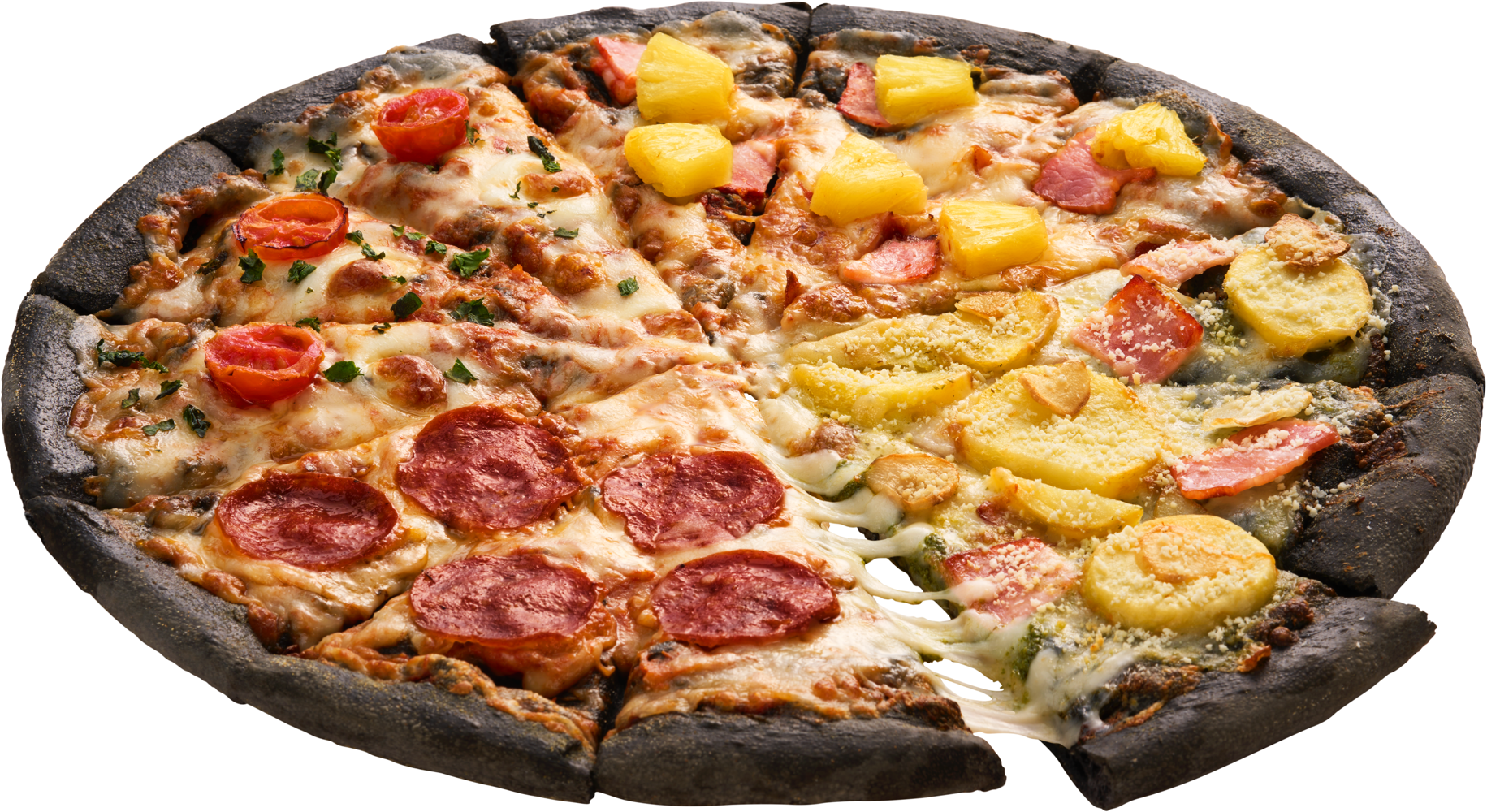 ドミノ・ピザは、竹炭を混ぜ込んでつくった、ふわもちの食感の真っ黒なピザ生地「デビルズクラスト」を使用した限定商品を、ハロウィン期間中、全国 766 の店舗*で製造販売します。真っ黒なピザ生地のご提供は日本のドミノ・ピザ史上初の試みです。ピザ焼成後も黒色をキープできるように、竹炭の配合量に試行錯誤を重ねました。普段より皆様にご好評をいただいているドミノ・ピザの人気かつ定番生地「ハンドトス」の特有の風味とふわもち食感をそのままに、竹炭を混ぜ込むことで、ハロウィンを盛り上げる真っ黒な生地を実現したものです。ちょっと怖い、でもとても美味しい、をお届けする自慢のハロウィン期間限定の生地です。