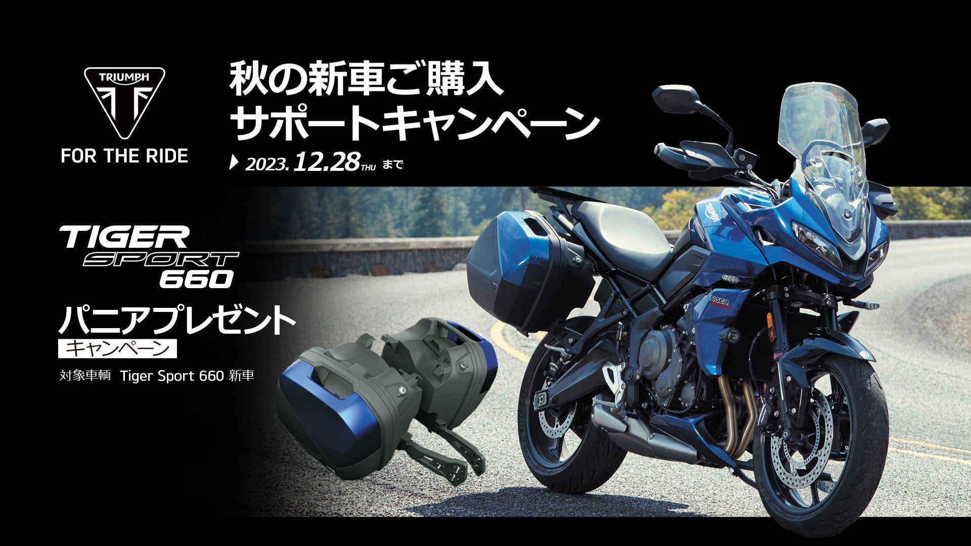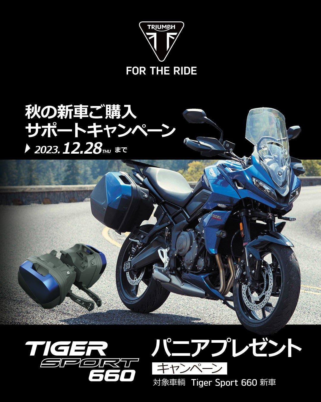 全国のトライアンフ正規販売店にてTIGER SPORT 660の新車をご成約いただいた方へ、サイドパニアケースをプレゼント