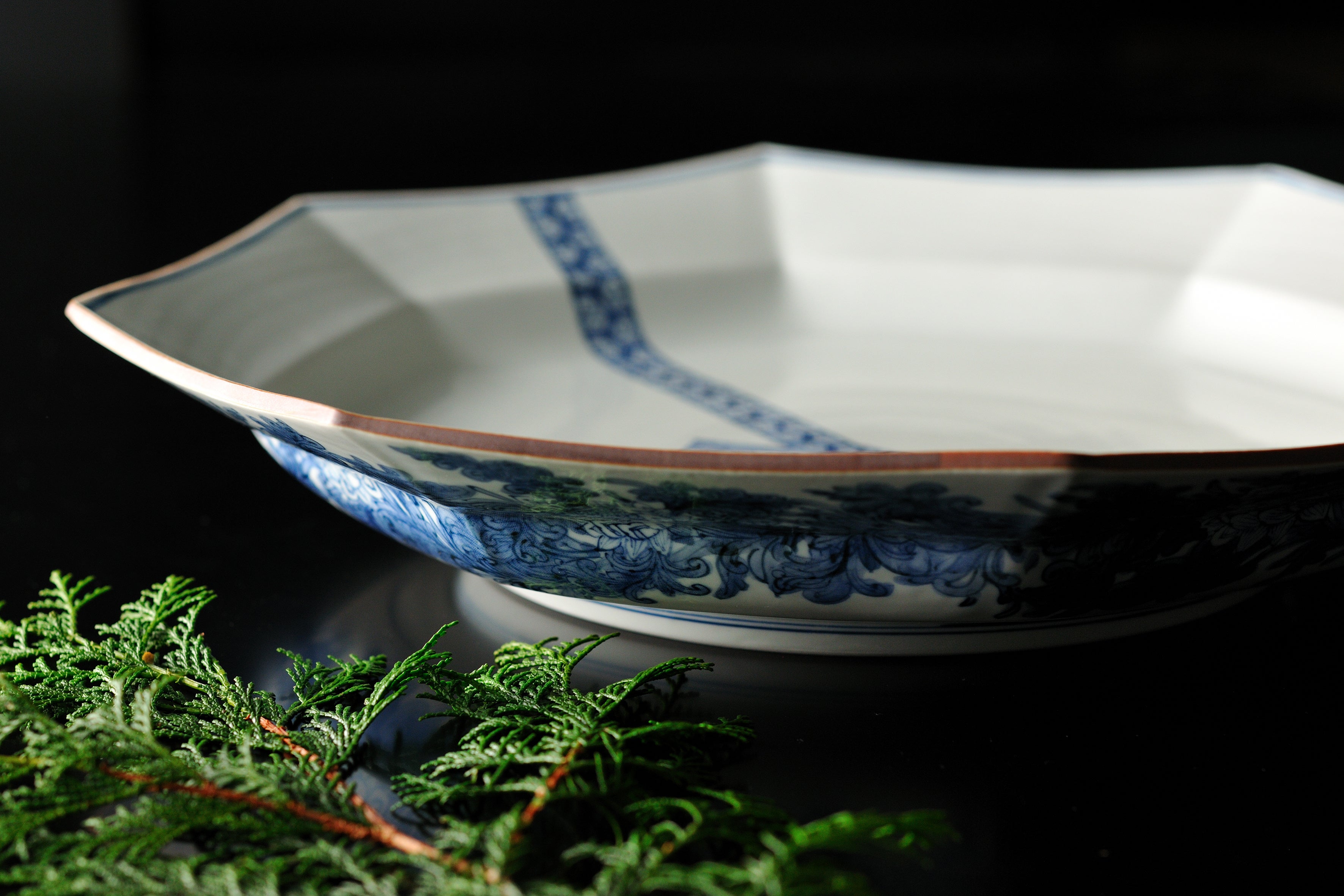 「器は料理の着物」と唱えた美食家「北大路魯山人」は、界 加賀にもゆかりのある人物です。その教えにならい、それぞれの料理に合わせる器にもこだわっており、地元の九谷焼作家の方々が制作したオリジナルのものも多くあります。例えば九谷焼の窯元「萌窯(もえがま)」が作陶した器の絵柄になっている仏手柑は、カボスや柚子と同じ柑橘類で、あたかも合掌しているかのような形状をしています。北陸にとって宝のような海の幸である蟹に感謝の気持ちで合掌を送るイメージを込めて、この器を使用しています。