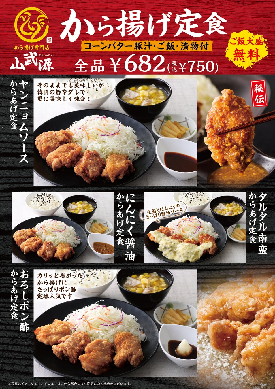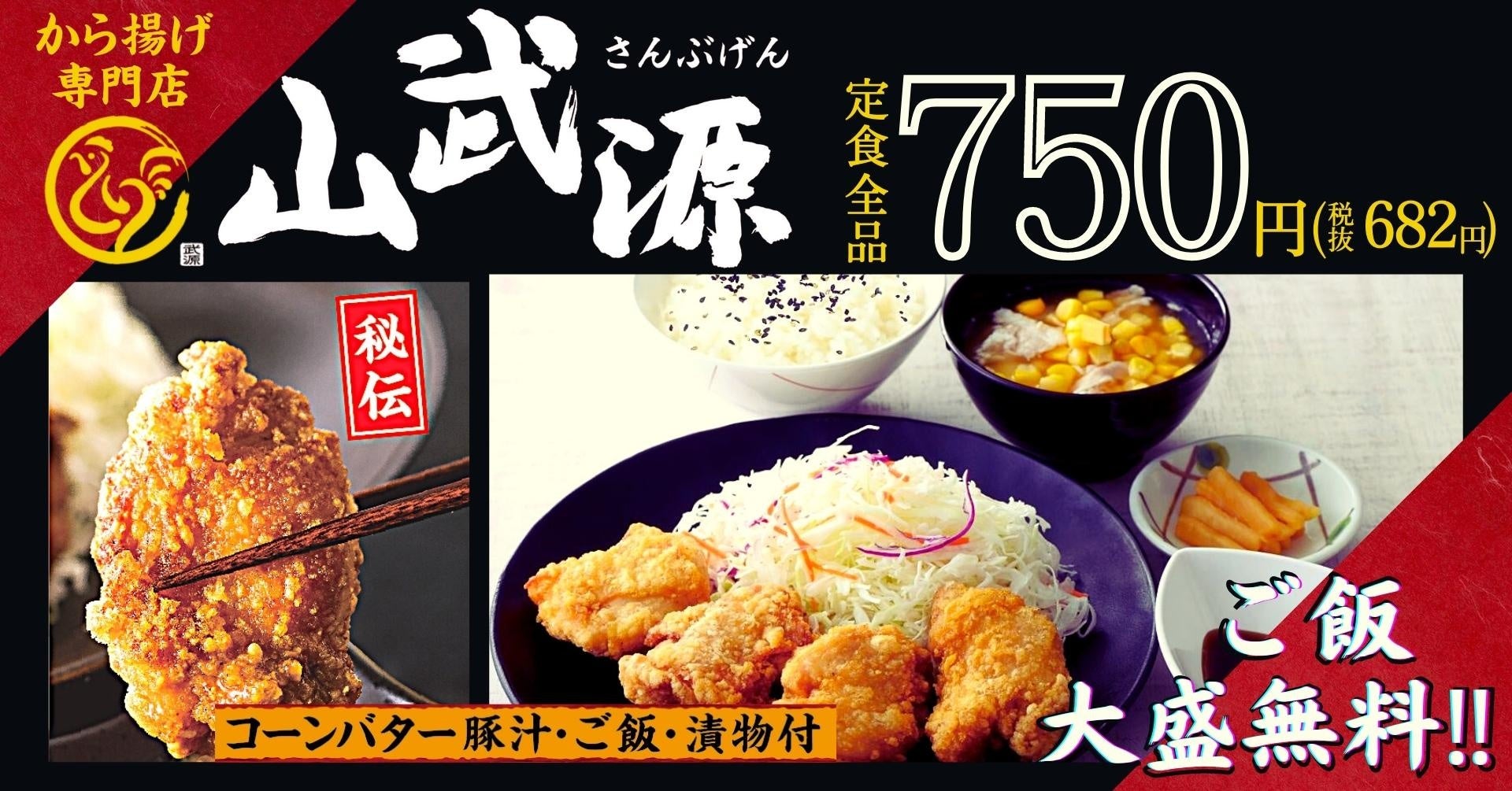 【全品税込750円!】“ワイズキャフェテリア”新宿エステックビル店にから揚げ専門店『山武源(さんぶげん)がオープン!『ご飯大盛無料・コーンバター豚汁付き』でボリューム満点!絶品定食をご提供いたします。