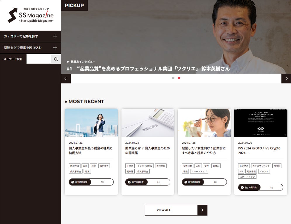 ・"起業家に寄り添い"起業を応援するメディア「StartupSide Magazine」