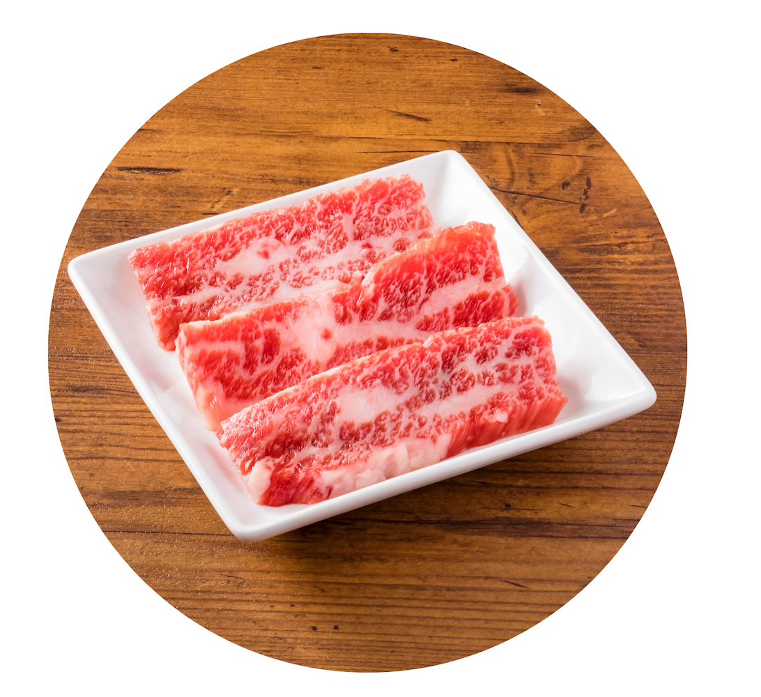 黒毛和牛のバラ肉の中でもカルビに適した数種類の部位を厳選して使用しております。