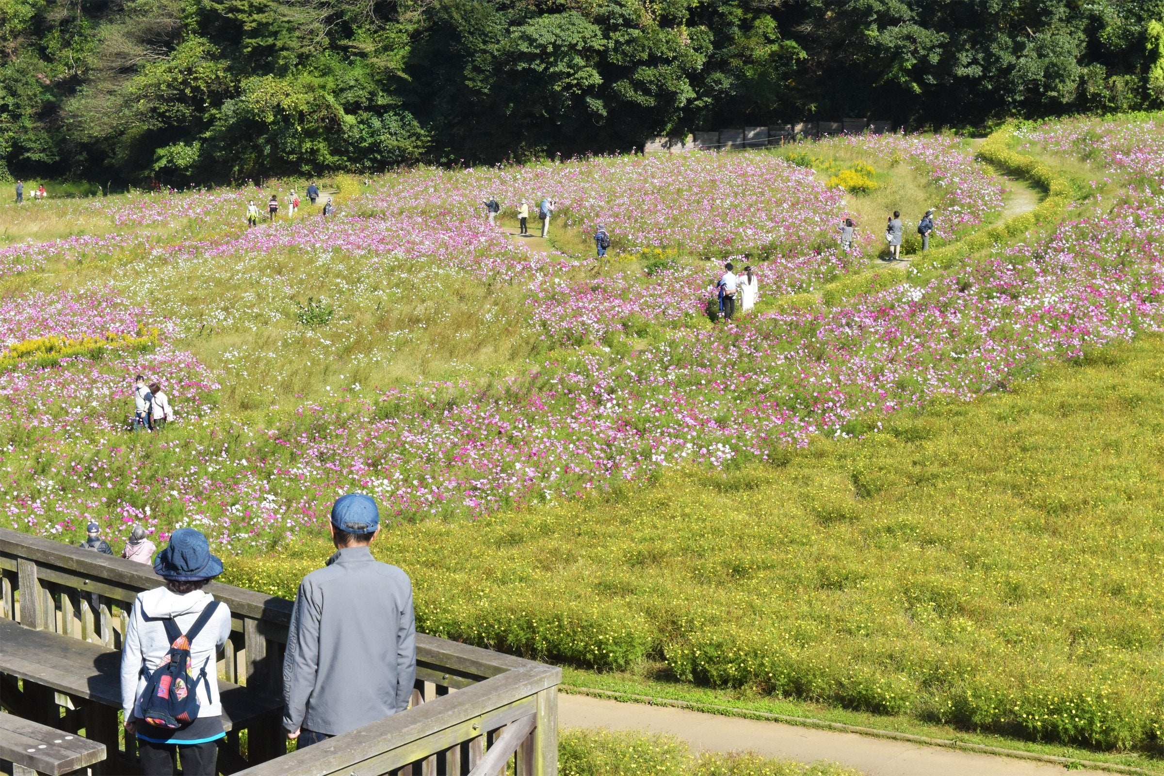 - くりはま花の国の「コスモス園」では8品種の開花リレーが見どころ!