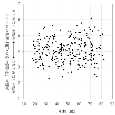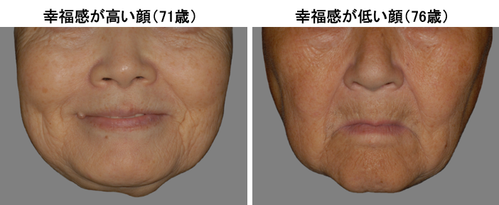 図1 「幸福そうに見える顔」と「幸福そうに見えない顔」の代表例(70代)