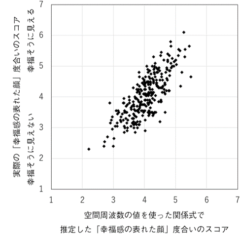 特定の空間周波数で実際の「幸福感の表れた顔」度合いを推定できた