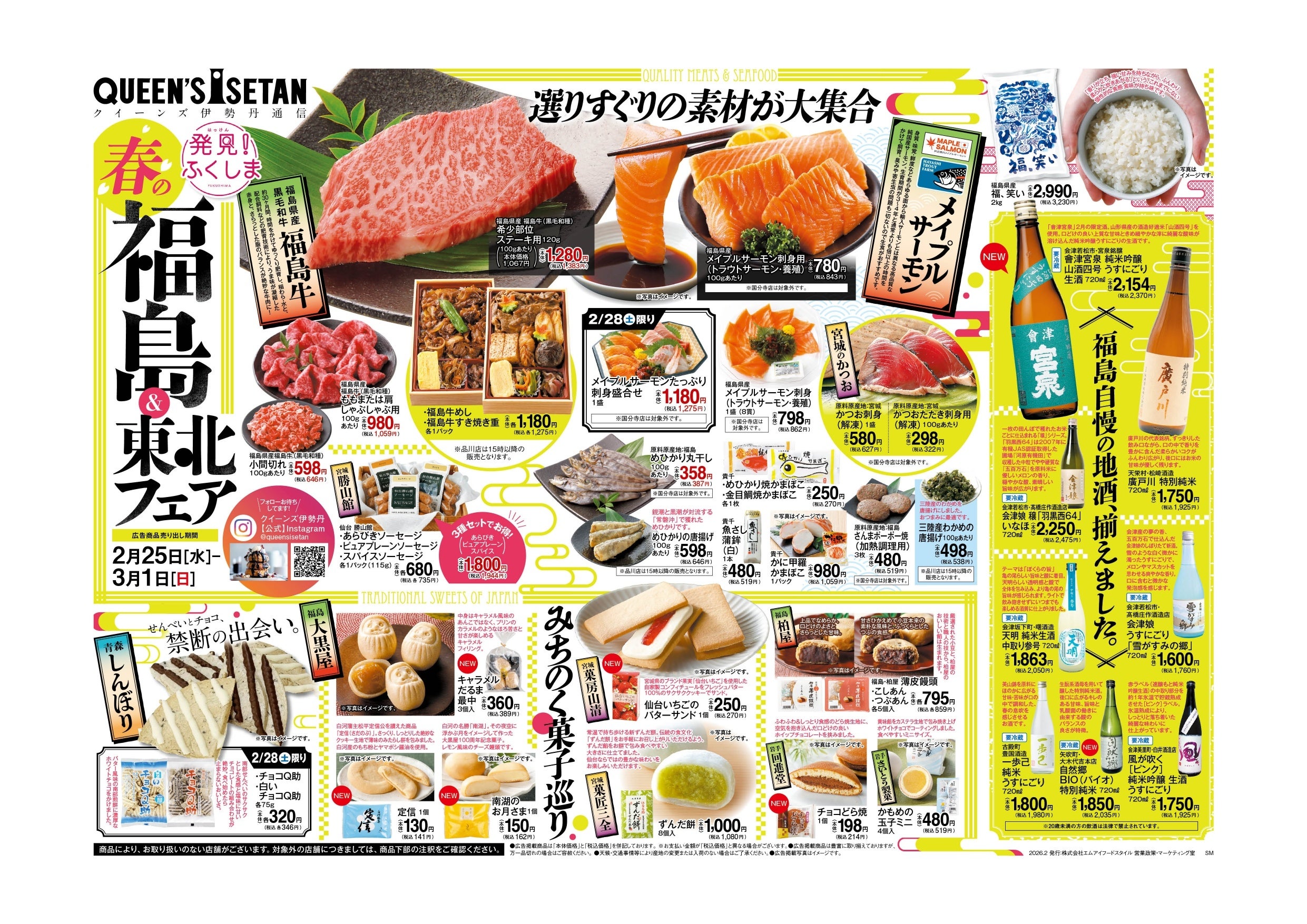 三越伊勢丹のグループ会社で、首都圏を中心に22店舗のスーパーマーケット(クイーンズ伊勢丹)を運営する株式会社エムアイフードスタイル(本社:東京都新宿区、代表取締役社長:雨宮 隆一)は、2月25日(水)~3月1日(日)の期間限定で、「春の福島&東北フェア」を開催いたします。