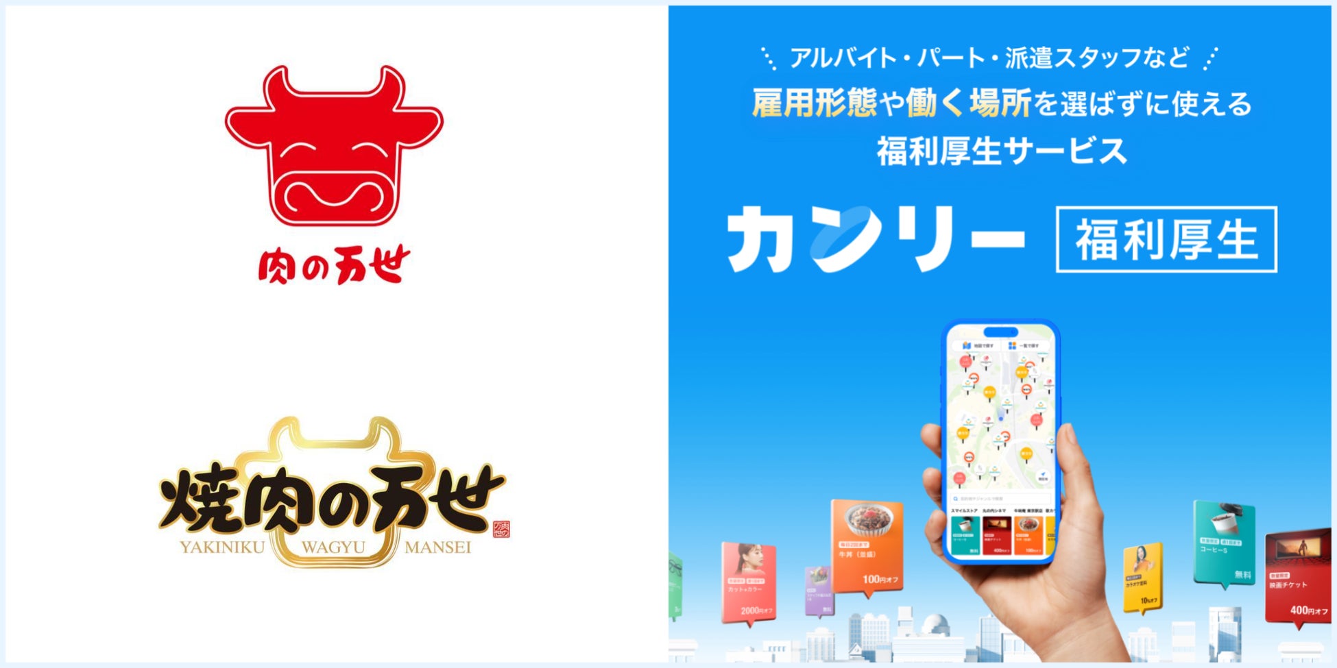店舗経営を支える世界的なインフラの創造を目指す株式会社カンリーは、2024年11月5日より「カンリー福利厚生(フクリー)」上に、「肉の万世」「焼肉の万世」の優待掲載が決定したことをお知らせいたします。