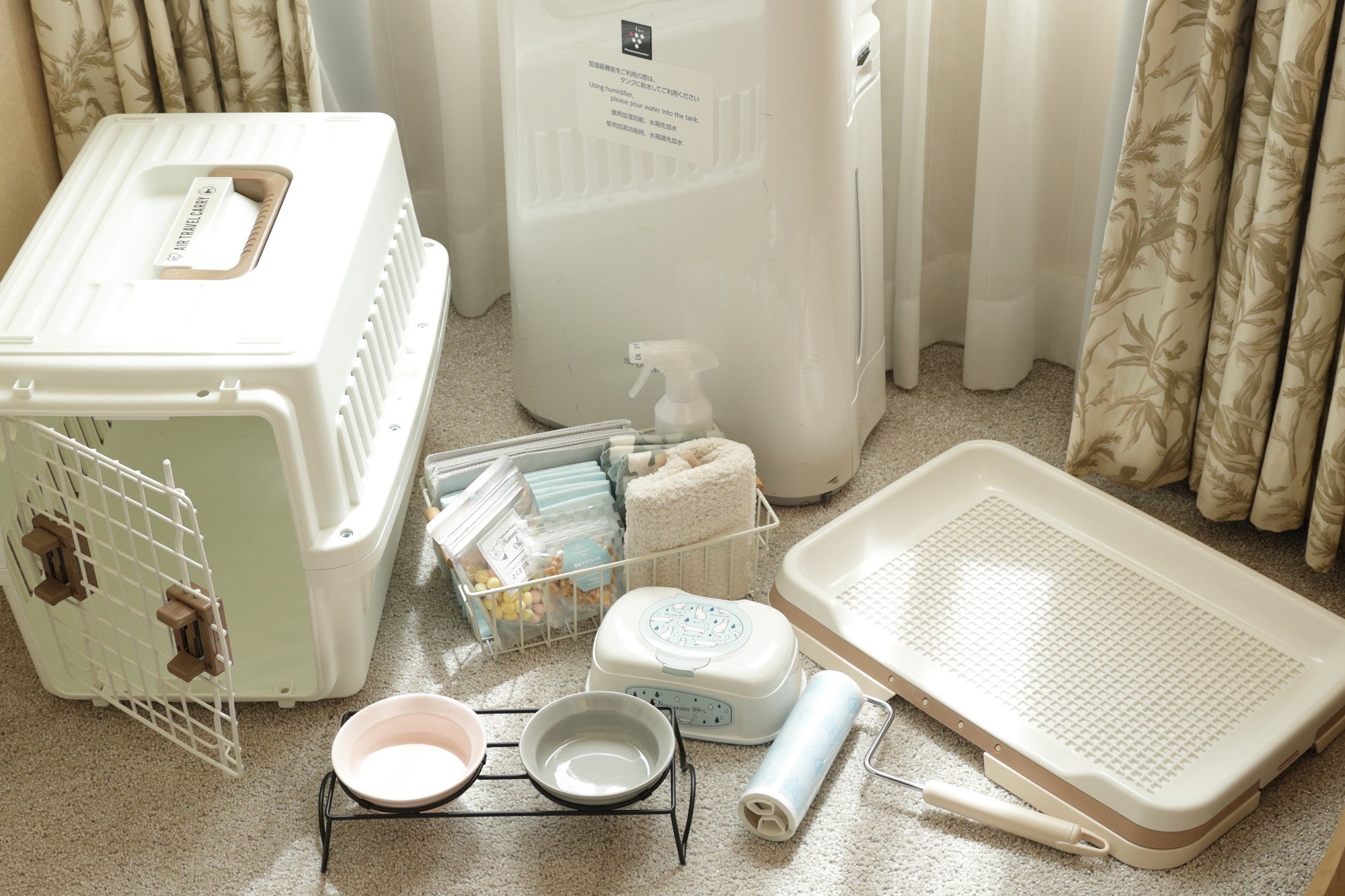 客室にはワンちゃん用のアメニティとしてクレート(ケージ)、トイレ、トイレシート、エチケット袋、食器、ワンちゃん用タオル等をご用意しております。また、館外へのお出かけ用カート(台数限定)もフロントにて貸し出しが可能です。ワンちゃん用の荷物ができるだけ少なくお越しいただけます。