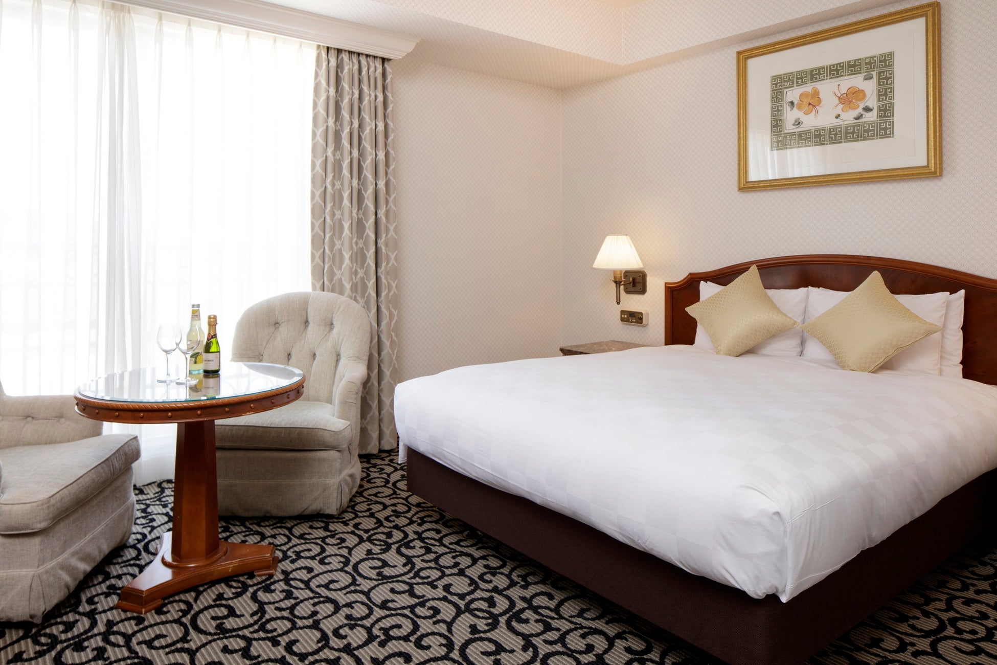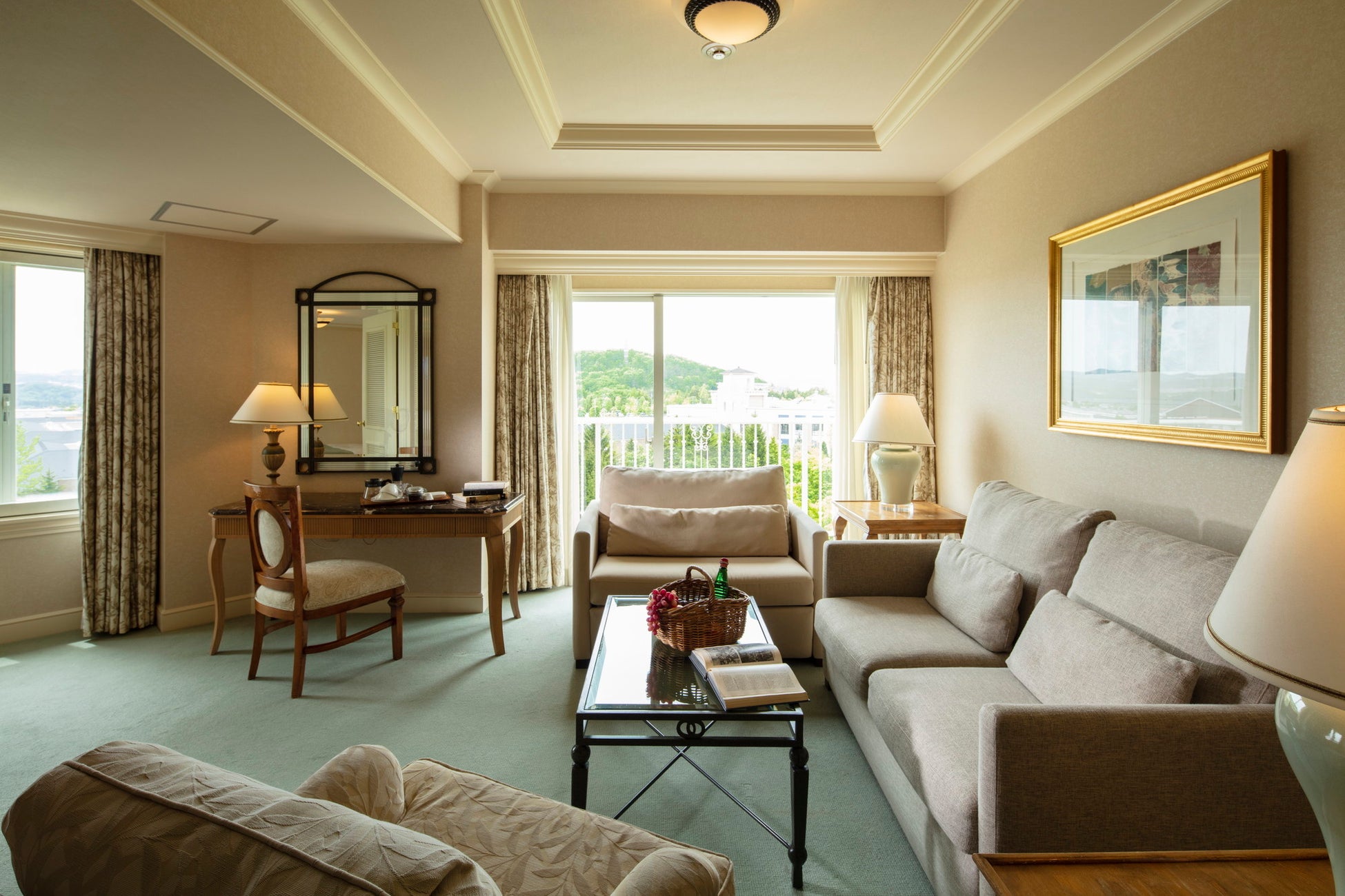 この宿泊プランでお選びいただける客室は、広々としたリビング空間とゆとりの水廻りが魅力の「ファミリーコーナースイート」、大きな窓が特徴的で解放感たっぷりの「ラグジュアリーツイン」、モダンクラシックなデザインとゆったりとしたベッドが快適な「モデレートダブル」の3種類となります。