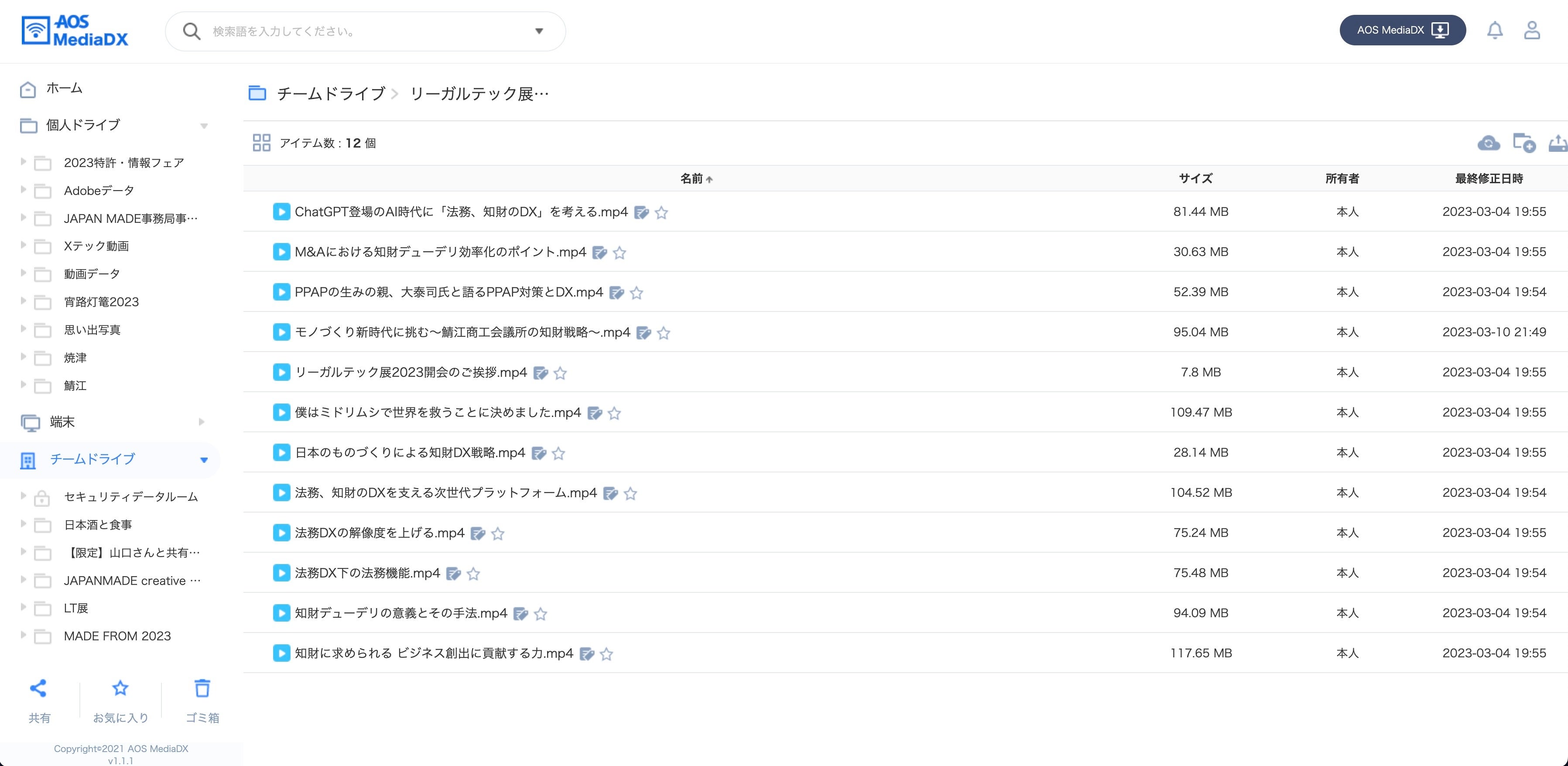 「メディアデータプラットフォーム AOS MediaDX」は、厳格かつ柔軟なアクセス権限管理機能や、ドキュメントへの検索用メタデータ付与によるデータ検索性の強化、AIデータ活用に向けたマルチモーダルAIへの対応、ファイルビューアー機能、暗号化機能、バックアップ機能、および大容量、長期保管向けアーカイブシステム機能を備えています。AOS MediaDXは、メディアデータ管理向けに設計されたクラウドストレージのSaaSです。