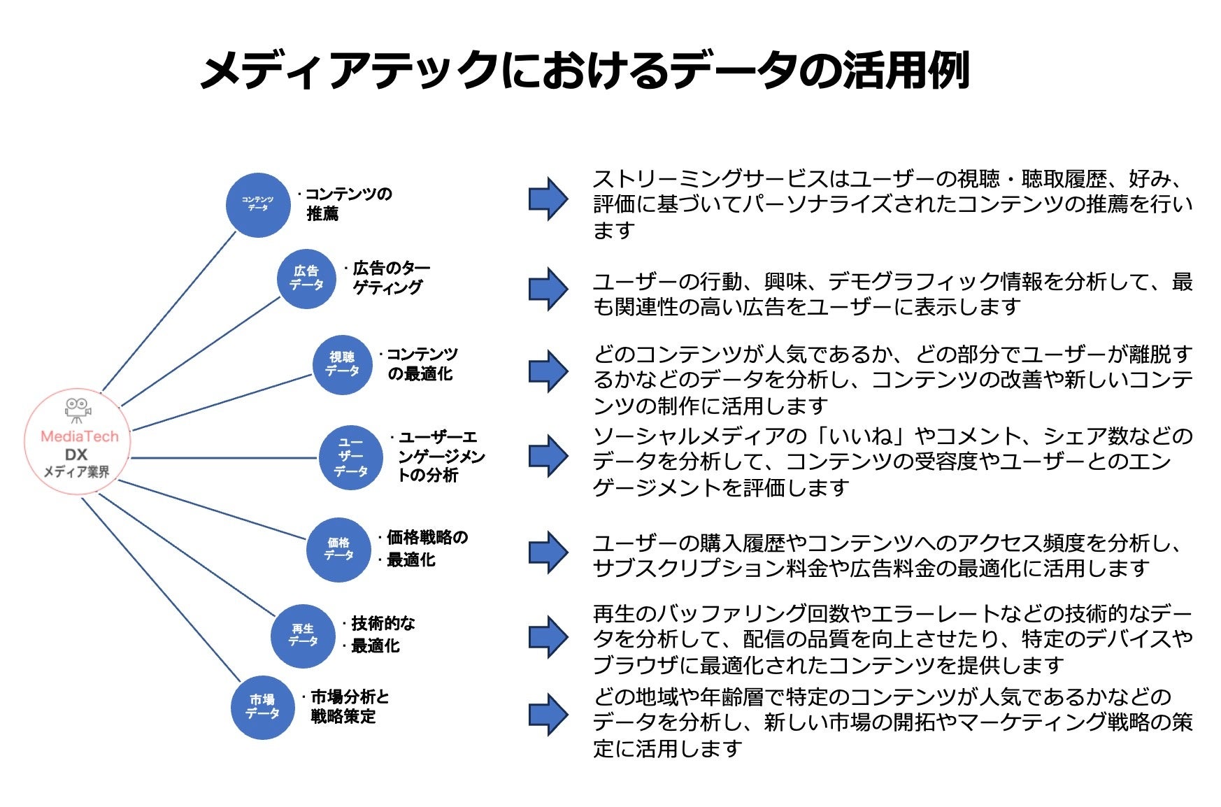これらの活用例は、メディアテック企業が提供するサービスの質を向上させ、ユーザー体験を向上させ、ビジネスの成長を促進するためのものです。