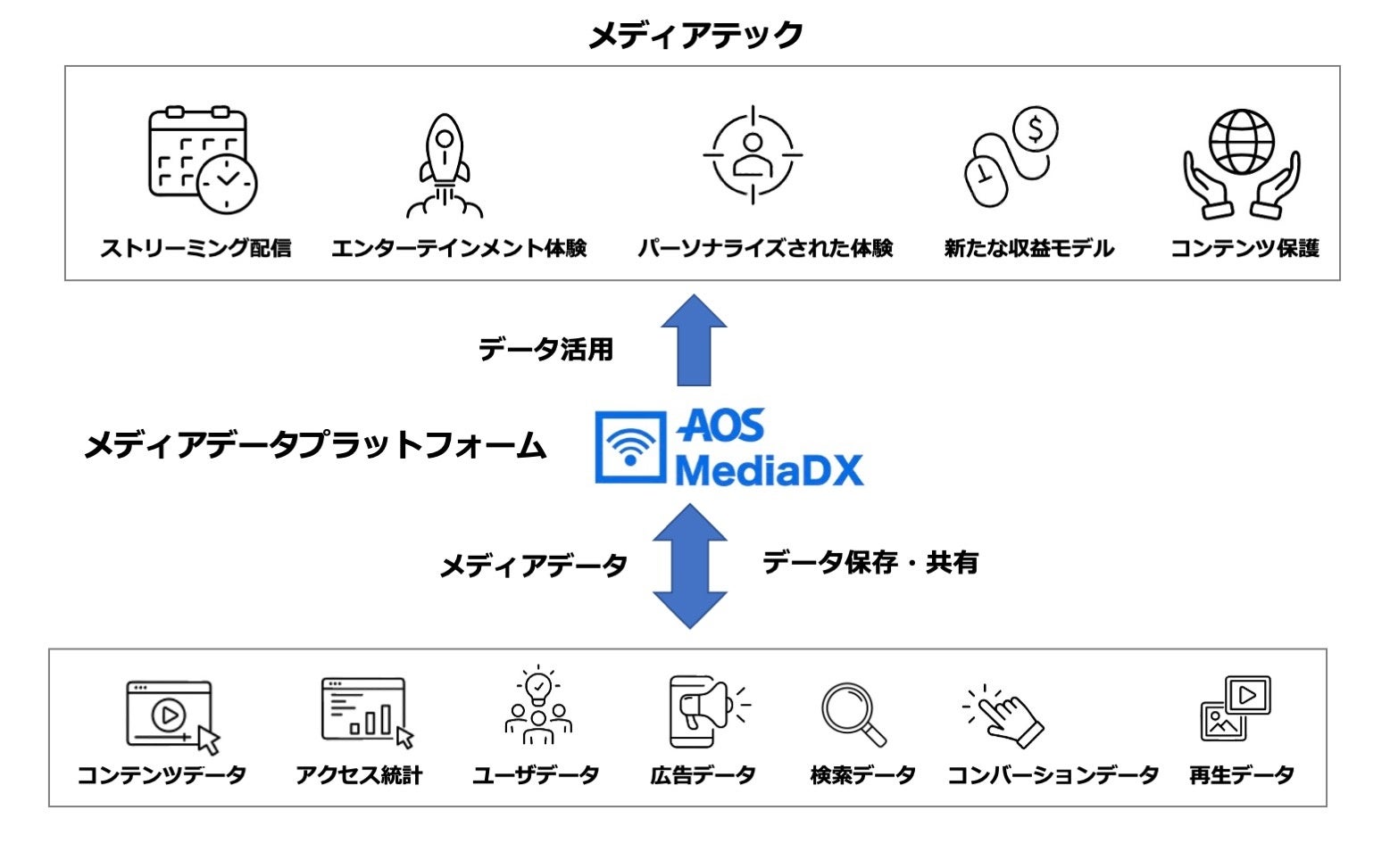 データプラットフォーム「メディアデータプラットフォーム AOS MediaDX」は、メディアテック産業が効率的に運営され、消費者のニーズに応じてサービスを提供するための基盤となっています。