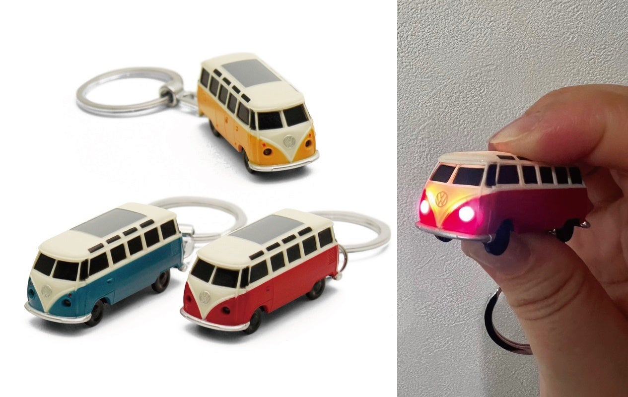 「LEDライト付きキーチェーン フォルクスワーゲンT1バス」を発売しました。とても小さなキーボルダーでありながら必要な時は底面のスイッチを押すとLEDライトが点灯する便利な仕様です。