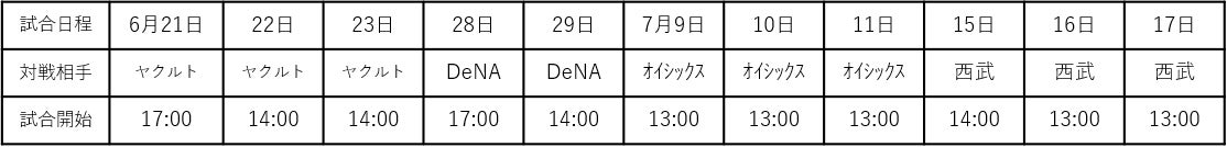 イースタン・リーグ公式戦11試合の入場券販売・イベント情報
