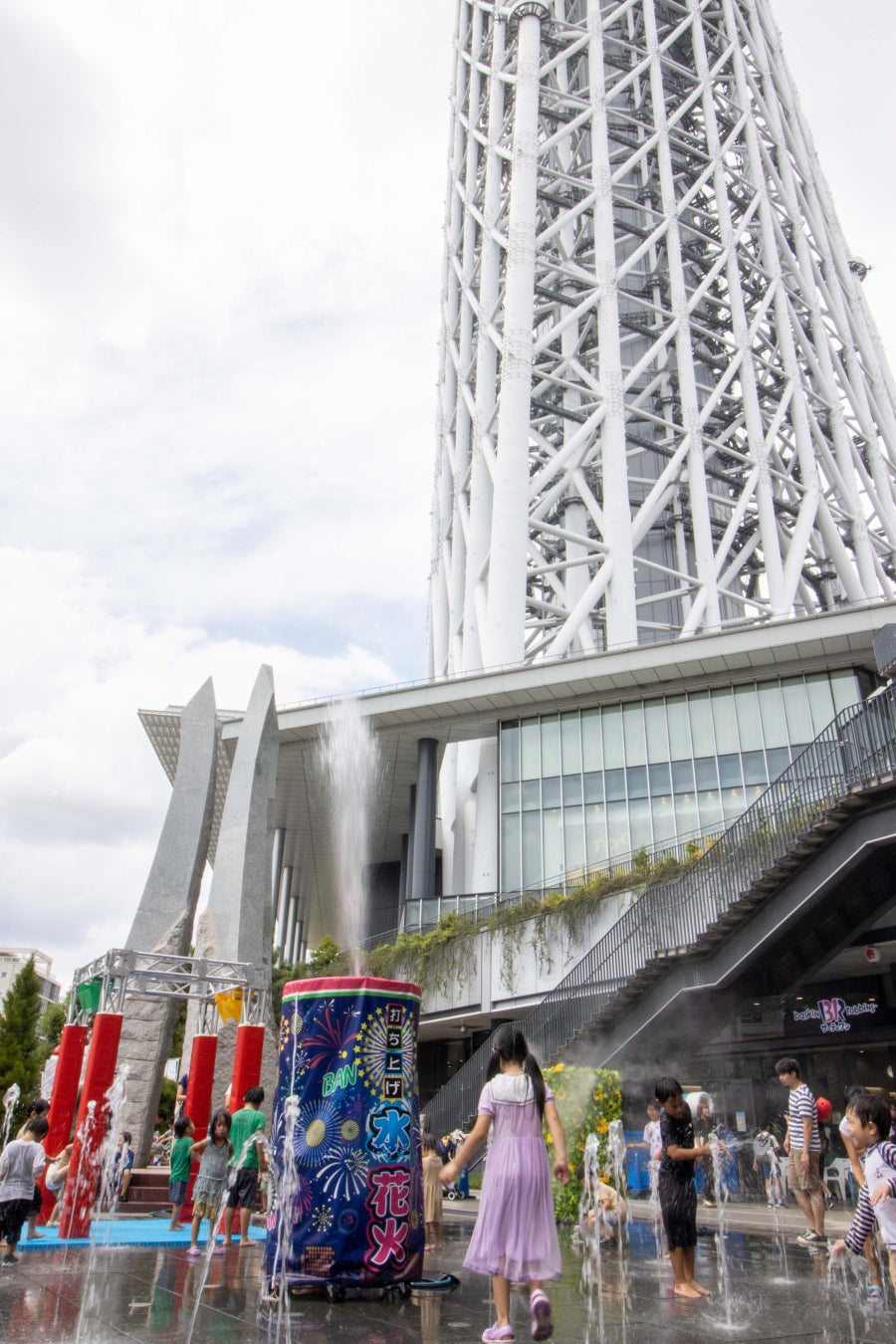 水遊び遊具 噴水だけじゃない!8月は「ソラマチひろば」と「ハナミ坂ひろば」に水遊び遊具を設置します。夏休みの楽しい思い出を作ろう!