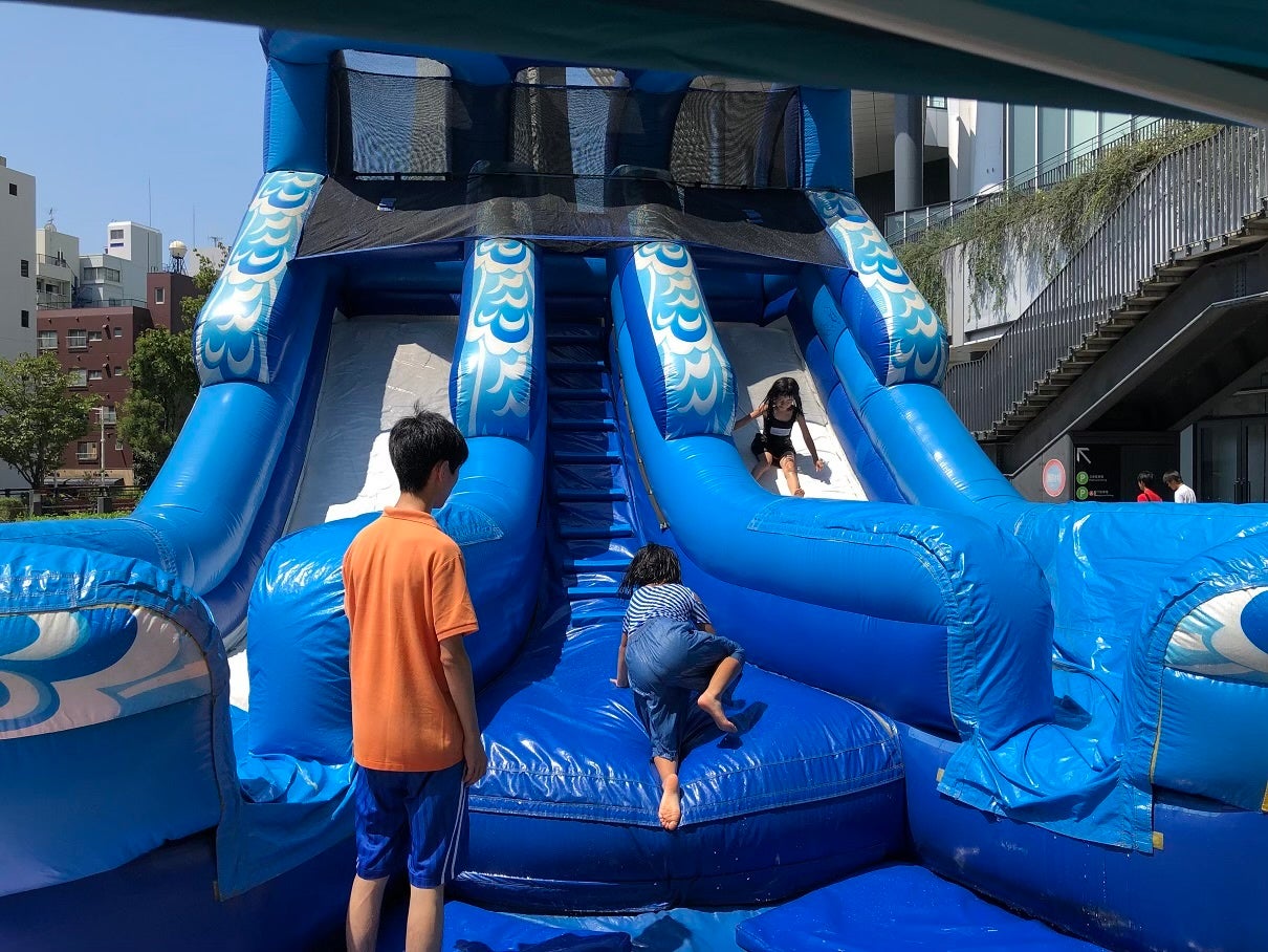 水遊びはしたいけれど濡れるのは困るという方にも朗報です。8月10日 (土)~18日 (日)の期間限定で、「ハナミ坂ひろば」に濡れずに遊べる「エアリー遊具」を設置します。
