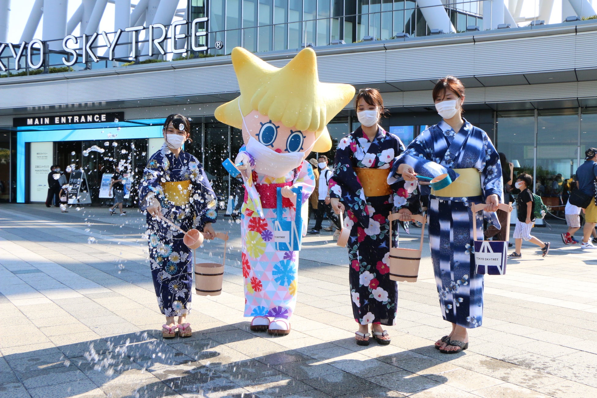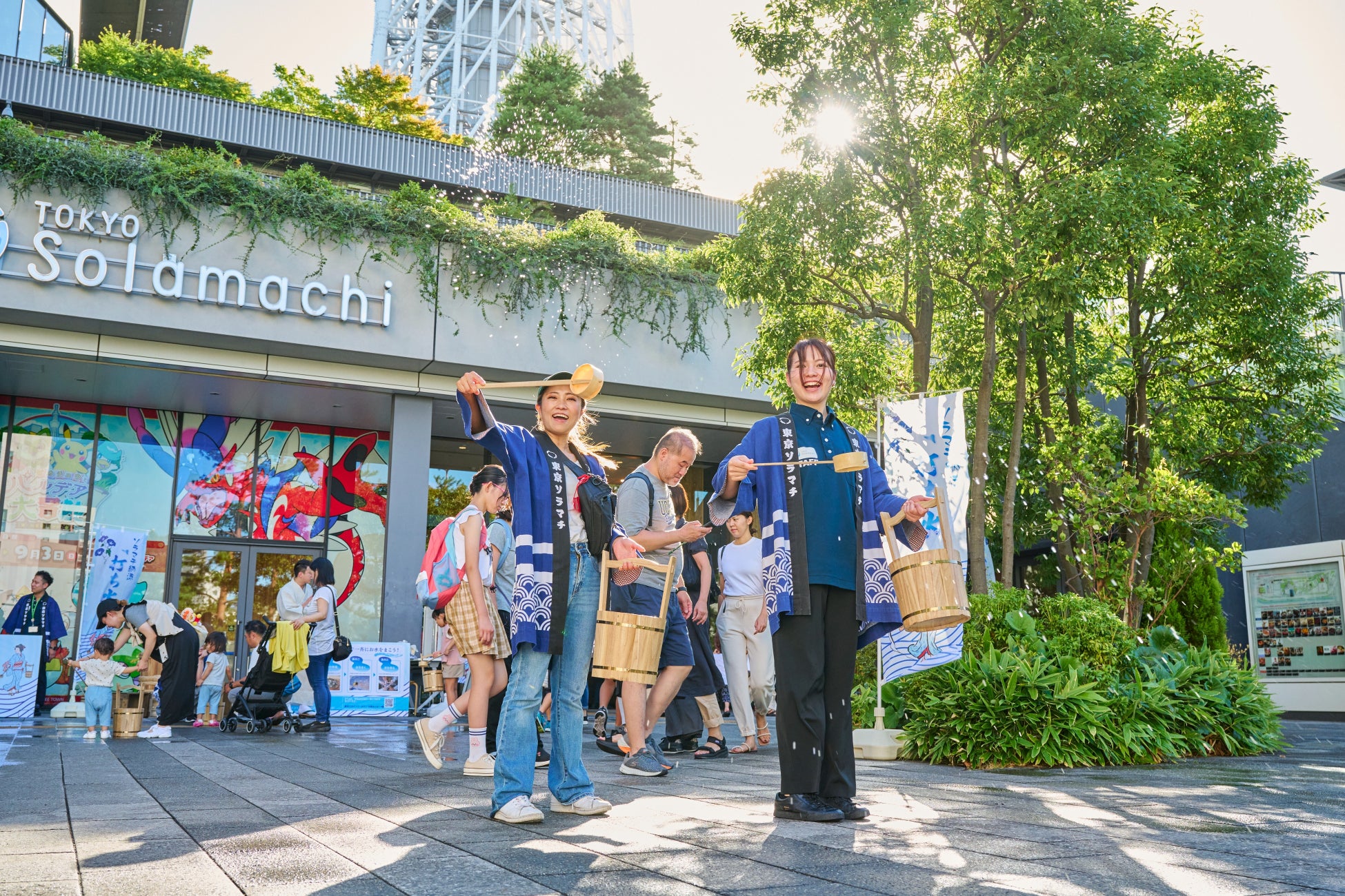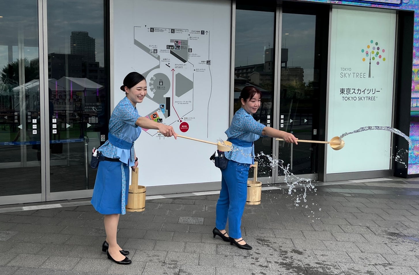 東京スカイツリー、東京ソラマチの両施設で開催する「打ち水」で日本の「涼」を感じてください。