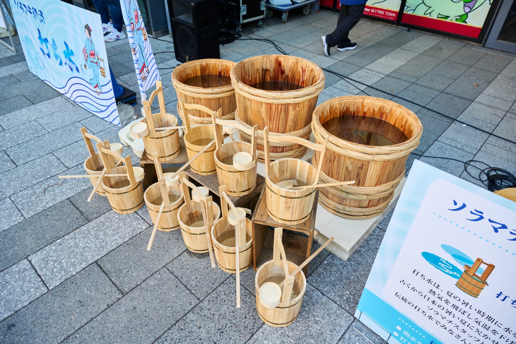 水桶とひしゃくを持って、法被を着たソラマチスタッフと一緒に打ち水で「涼」をとりましょう!東京ソラマチは、今年も「打ち水」を通してお店とお客さまとのコミュニケーションを図ります。