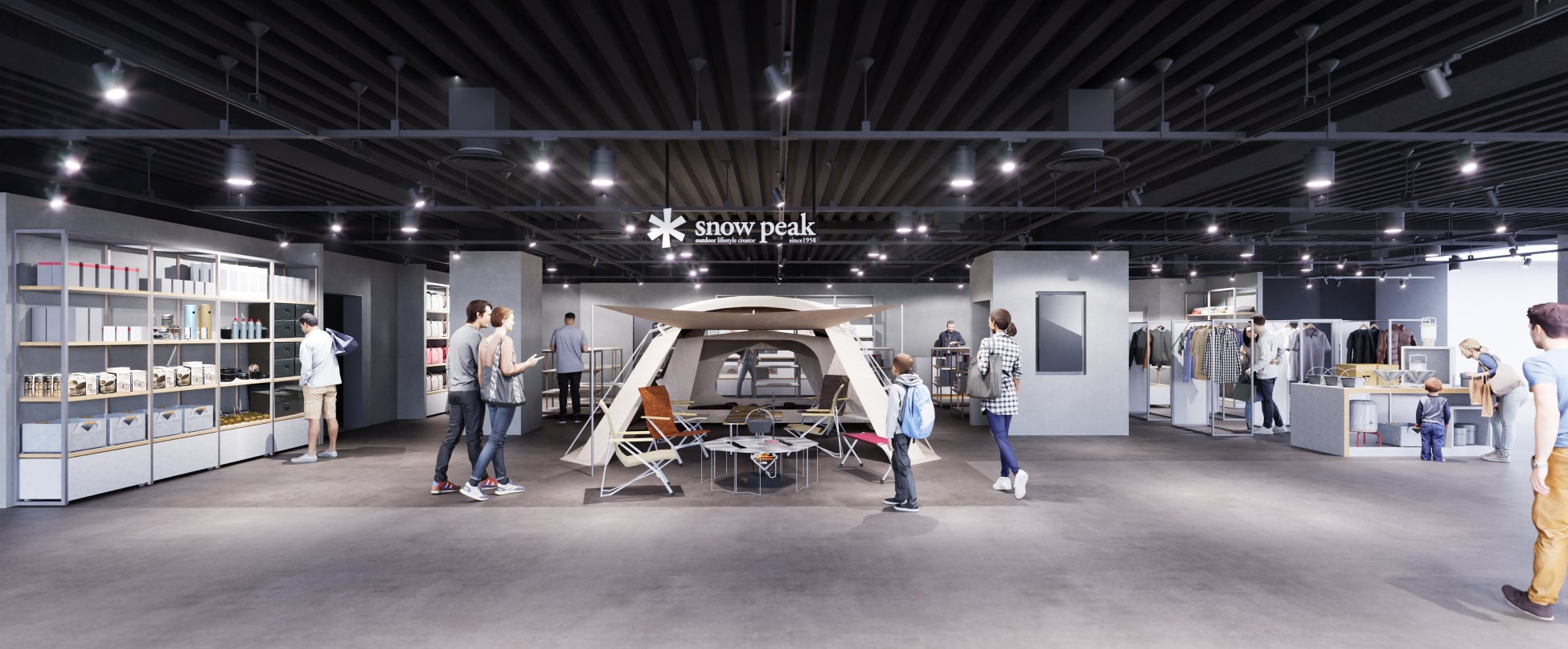 ・スノーピークコーナーはインストア型の新業態「LAND BASE」を日本初展開。広いスペースに展示される複数のテントやシェルター、直営店並みに拡充するアパレルアイテムなどによって、スノーピークの世界観を演出。