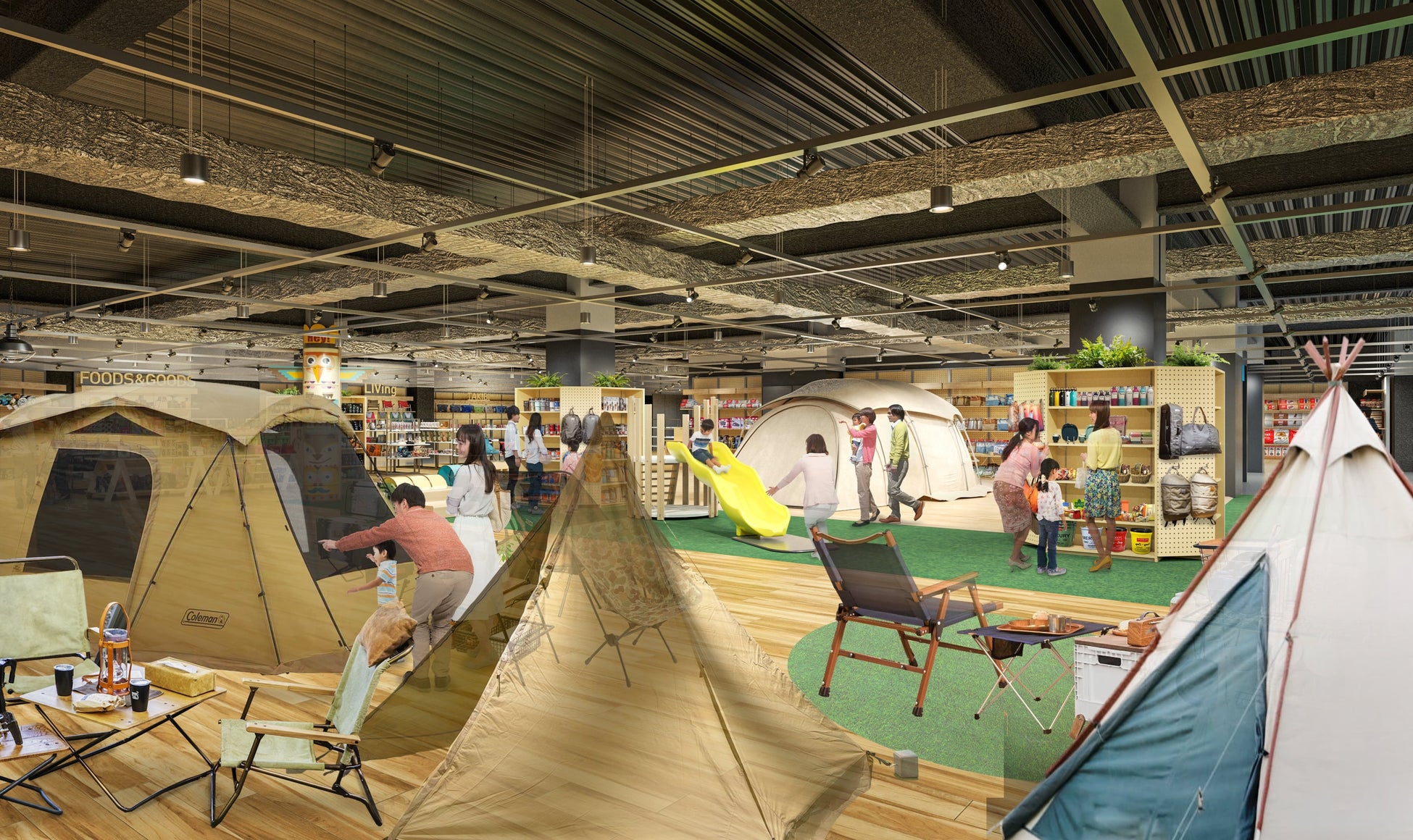 ・店内でアウトドアの世界観を連想させる「LIVing」「DINing」「SLEEPing」」シーン別の売り場でリアルな店舗体験が可能。
