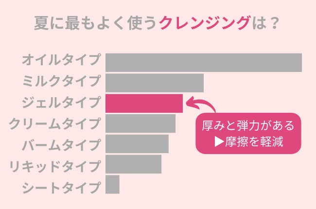 夏に使用するクレンジング人気NO.1は「オイルタイプ」!摩擦を軽減したい方には○○がおすすめ。