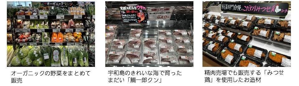 店舗周辺は共働き世帯や小さいお子様がいる若いファミリーが多いことから、安心・安全に繋がる商品や、大容量商品、簡便・半調理品を豊富に取り揃えます。また、生鮮売場では、鮮度の良い素材を提供し、それらを使った店内で製造したサミット自慢の総菜やデザート、サンドイッチなども充実しています。