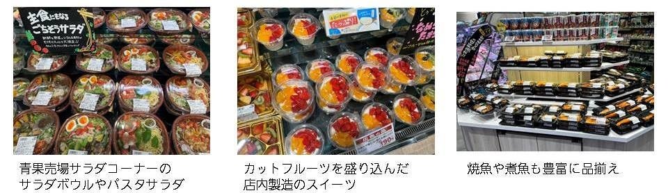 店内で手作りしたフレッシュサラダやカットフルーツ、さらには焼魚や煮魚、お肉総菜など、サミット自慢の品を豊富に取り揃えています。また、これらを使用したお弁当もご用意し、お仕事や家事、育児にお忙しい方の「簡単に美味しく食べたい」というご要望にお応えできる売場となっています。