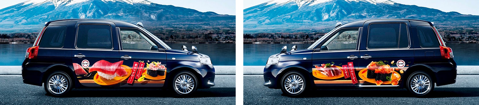 - 都内の道が回転レーンに!すしを描いたスシロータクシーが期間限定で登場!