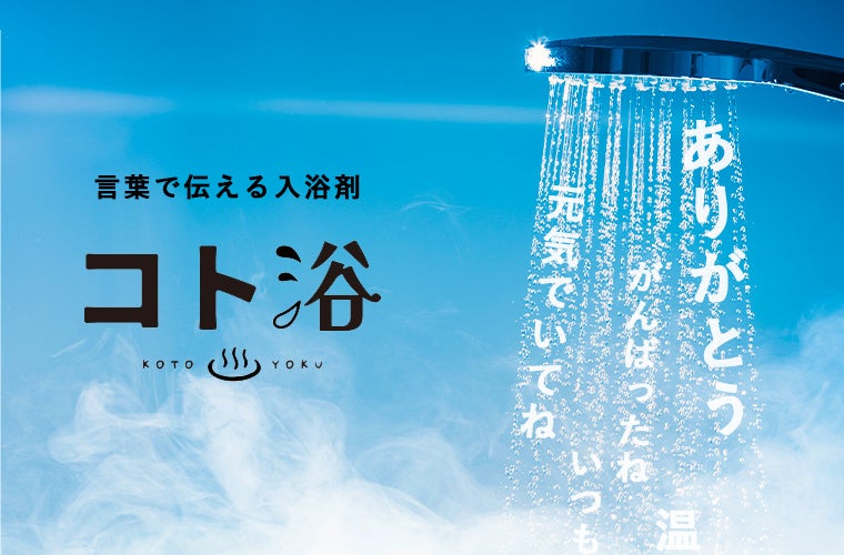 「言葉を浴びる」「言葉に浸かる」「言葉を贈る」を融合させた新浴感※ 。 入浴には古くから温泉浴をはじめ、サウナ浴やシャワー浴などいろいろな種類があり医療や衛生的な健康習慣として広く認知されてきましたが、そんな入浴に気持ちを伝える「言葉」をプラスするから「コト浴」なのです。日持ちがするから贈る時期を選ばず、プチプラギフトとしても手頃でそのまま渡してもかわいいパッケージ、 贈らない理由が見当たらないほどオススメしたいお風呂のソムリエ(バスリエ)からの提案です。