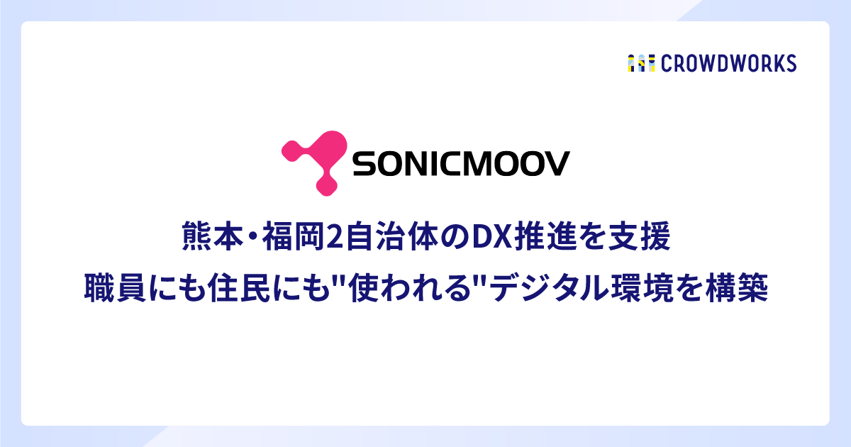 フリーランス業界最大級プラットフォーム(登録ワーカー含む登録ユーザー数700万人・登録企業100万社(*1))を基盤に、IT人材&DXコンサルティングサービスを提供する株式会社クラウドワークス(本社:東京都港区、代表取締役社長 兼 CEO:吉田 浩一郎、以下「当社」)のグループ会社で、スマートフォンアプリやWEBシステム、LINEアプリ開発を手掛ける株式会社ソニックムーブ(本社:東京都港区、代表取締役:大塚 祐己、以下「ソニックムーブ社」)は、熊本県宇土市および福岡県広川町の自治体DX推進支援(以下「本支援」)を開始しました。