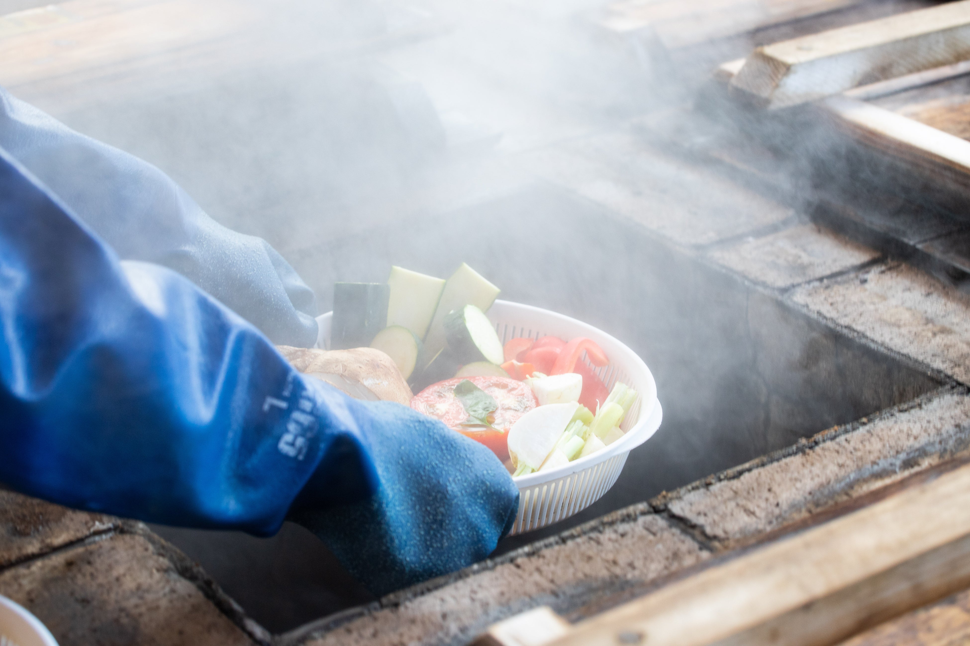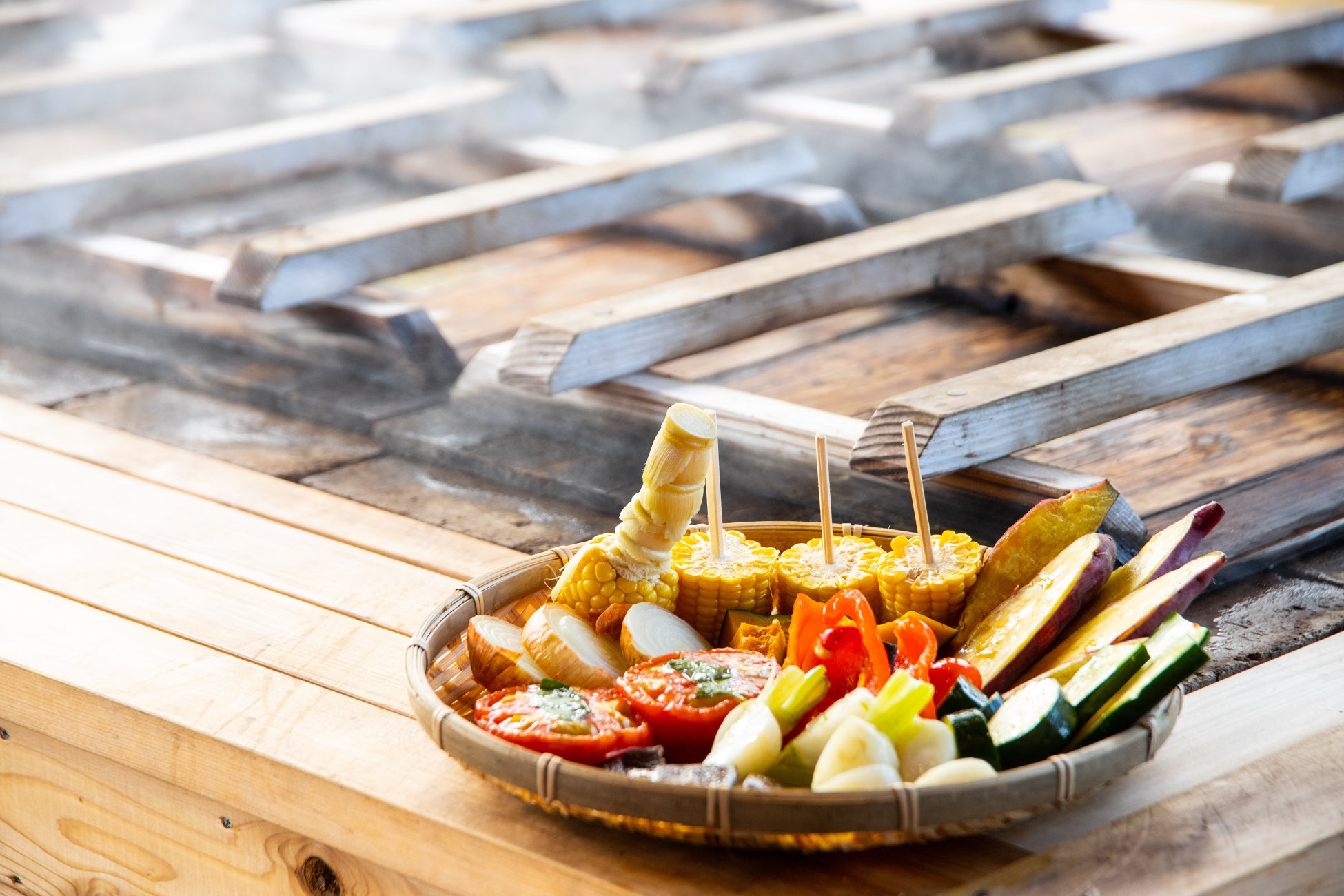 大分県産和牛や新鮮な魚介類を中心としたBBQや数あるグランピング施設でもここだけの約95℃の温泉蒸気を活用した地獄蒸し体験などこの地ならではのグルメグランピング体験が好評です。