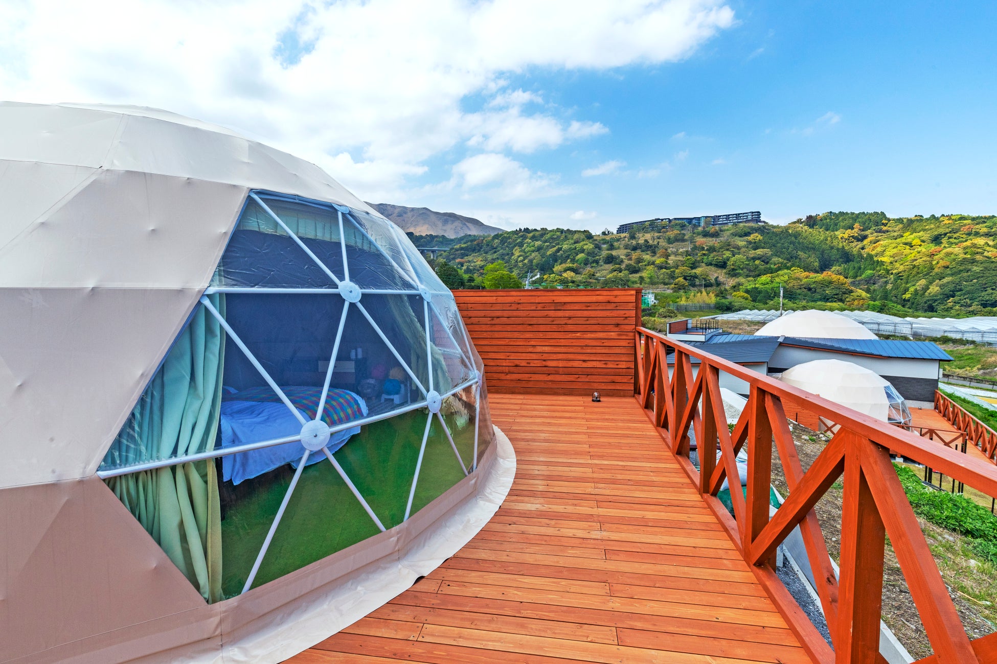 鉄輪温泉地区にある鉄輪地獄地帯公園内に九州エリア初の全棟客室温泉風呂付きグランピング施設として