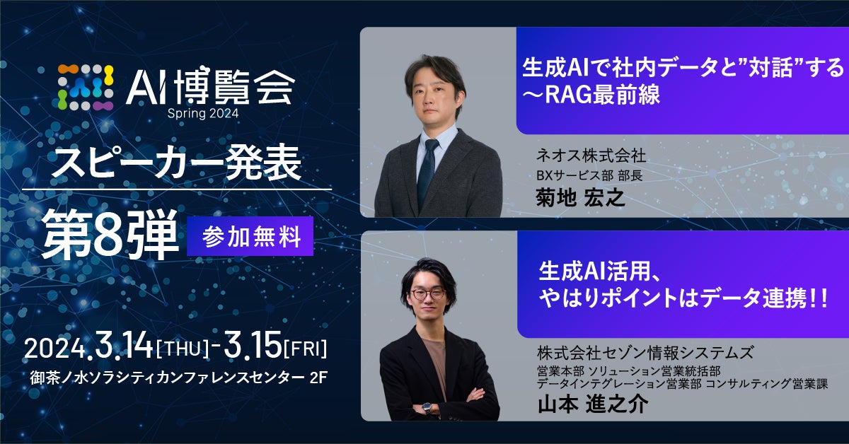 AI博覧会、第8弾スピーカーを発表!ネオス 菊地氏、セゾン情報システム 山本氏が講演!