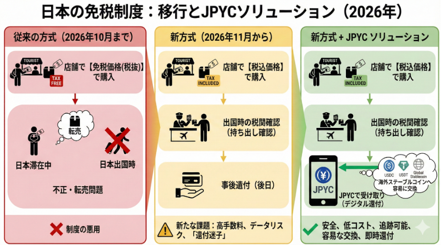 日本免税 × JPYC:2026年「免税リファンド新制度」に向け、日本円ステーブルコインを活用した次世代の免税還付モデルを構築