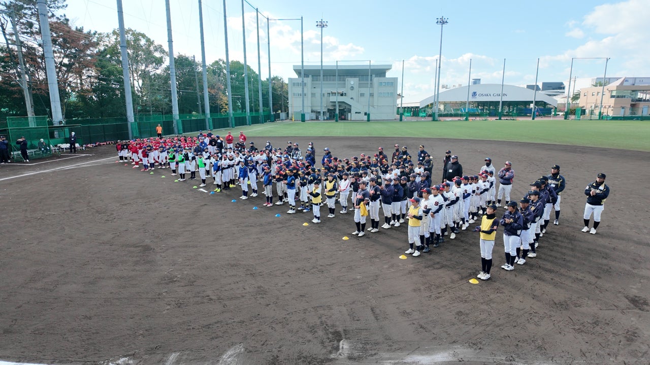 昨年に引き続き今年もオリックス・バファローズ様にご協力いただき選手の方々にも指導していただきました。池田市、吹田市、高槻市の少年野球チーム選抜16 チーム183 人が参加しました。