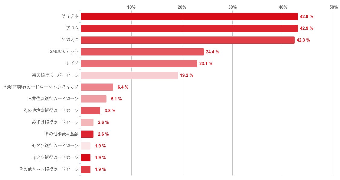 また、プロミスが42.3%、SMBCモビットが24.4%でこれに続いた。