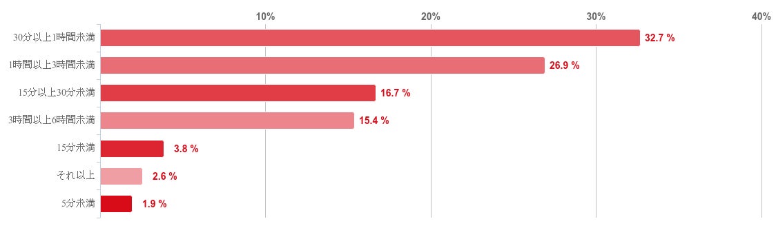 「30分以上〜1時間未満」との回答が32.7%で最も多く、「1時間以上3時間未満」が26.9%だった。