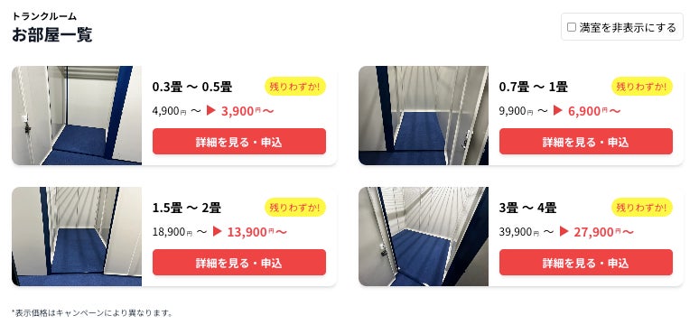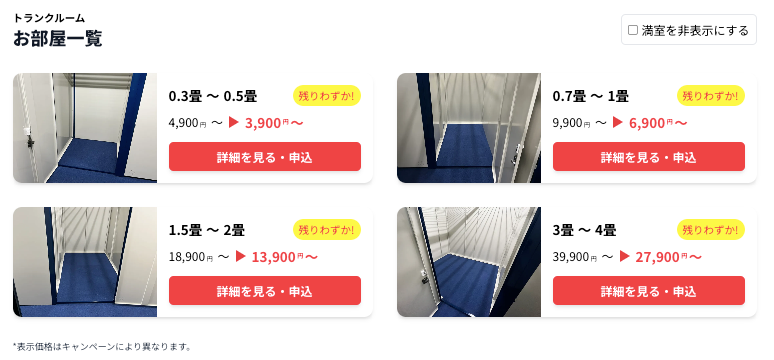 トランクルームってどのくらいの広さで、どの程度の荷物が収まるの?