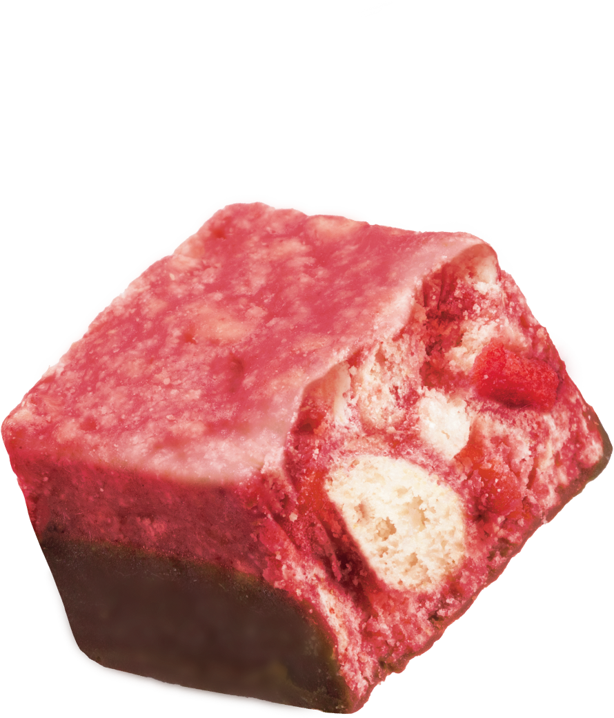 いちごは、香り・酸味・色味によって濃さの違いがひとくちで伝わるフレーバーであり、「200%超え」というコンセプトを直感的に体感できる素材です。本商品では、いちごチップとフリーズドライいちごパウダーを贅沢に使用し、甘さだけでなく、いちご特有の甘酸っぱさもしっかり感じられる味わいに仕上げました。