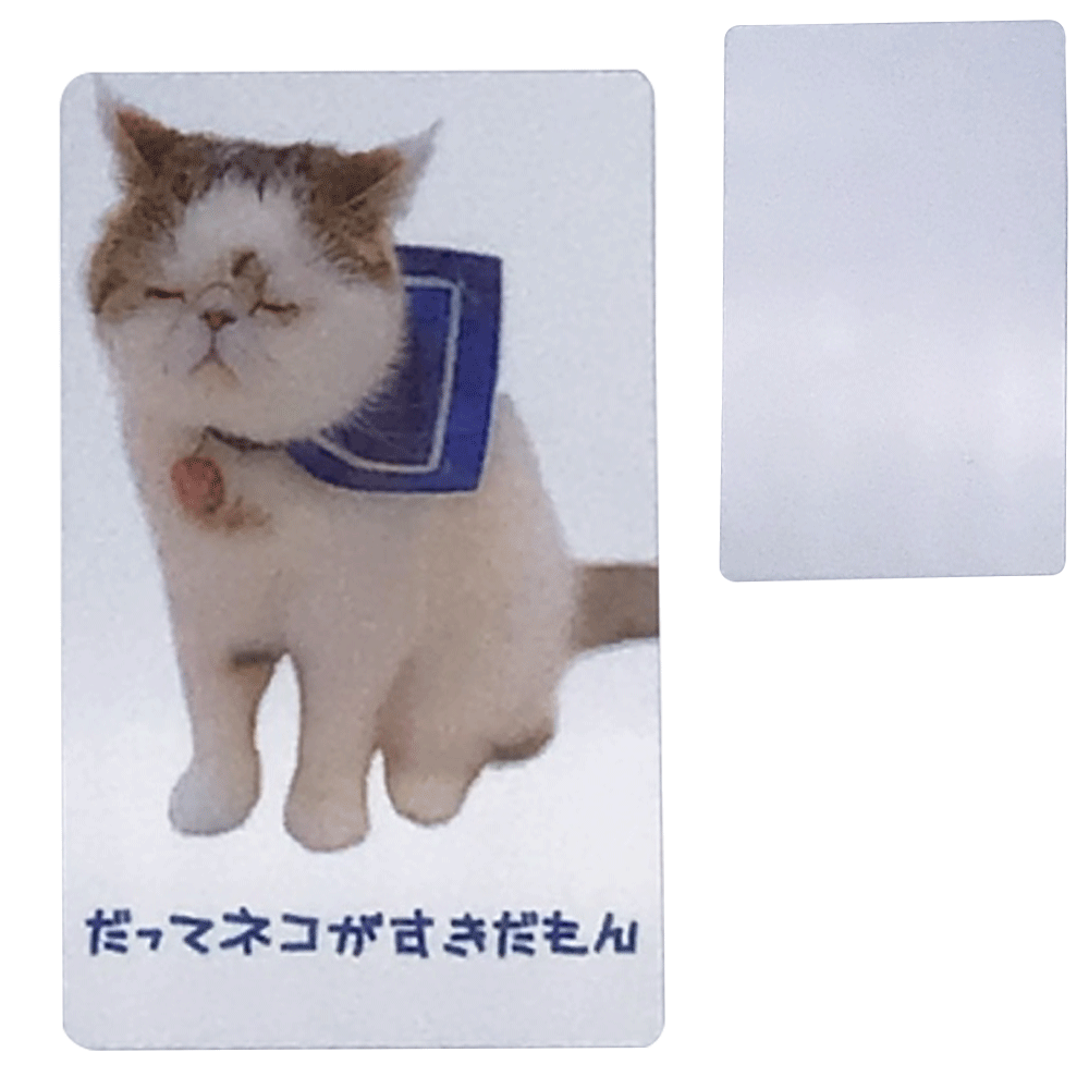 UP-Tから、透明フォトカードが新登場!クリアのベースにお好きなデザインをプリントできます。PET素材なので、水に強いのも魅力です。ペットの写真や部活の記念写真、お子様の描いたイラストなど、長く保存したい画像をプリントするのにおすすめです。カードフォルダーに入るサイズなので、どこにでも持ち歩けるサイズ感です。