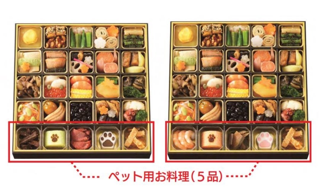 ペット用のお料理を詰め合わせた、迎春の祝いをペットとご一緒に楽しめるおせち料理です。華やかなおせち料理37品目に加え、ペット用のお料理5品を詰め合わせました。冷凍便にてお届けいたします。(髙島屋限定販売)