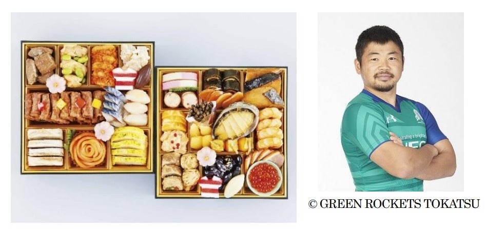 栄養あふれるおせちで、2023年も元気にトライ!ラグビー熱が高まりそうな2023年。紅白ようかんでデザインしたラグビーウェアやチョコのラグビーボールなど、見ているだけで気持ちがあがるメニューに加え、栄養面でも「高たんぱく」にこだわったお料理を詰め合わせ。ラグビーW杯3大会連続出場の田中史朗選手と共にメニュー開発をしたおせちです。(髙島屋限定販売) ※たんぱく質 約18,2g/100gあたり