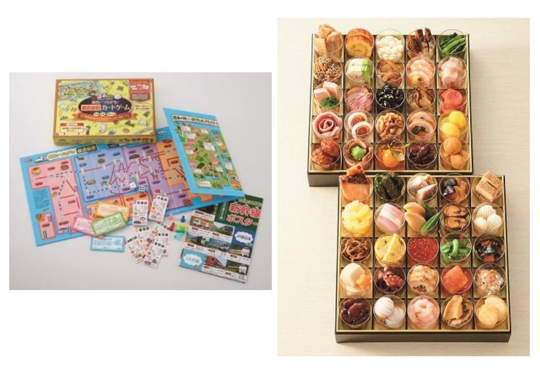 全国の郷土料理をにぎやかに盛り込んだおせちで、“楽しい旅気分”を満喫できます。北海道の松前漬から沖縄県のサーターアンダギーまで、日本各地の郷土料理や名産品16品目を加えた、華やかな50マスのおせちです。付属の、鉄道カードゲームを楽しみながら、心なごむ家族団欒のお正月をお過ごしください。冷凍便にてお届けいたします。(髙島屋限定販売)