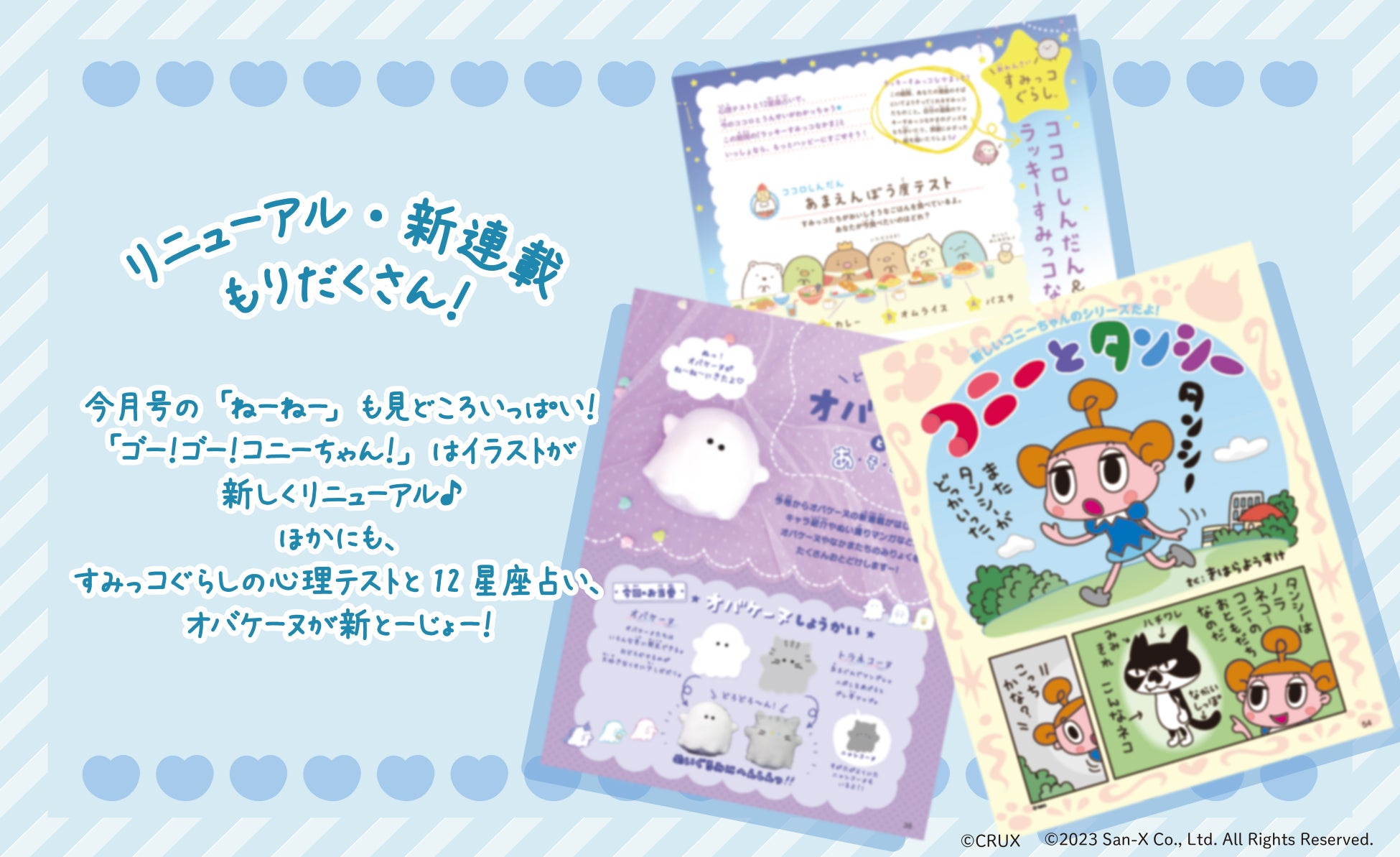 ★新連載&リニューアル♡ すみっコぐらしの心理テスト&星占いがスタート! ほかにも「オバケーヌ」「コニーちゃん」などなど、たのしさもりだくさん!